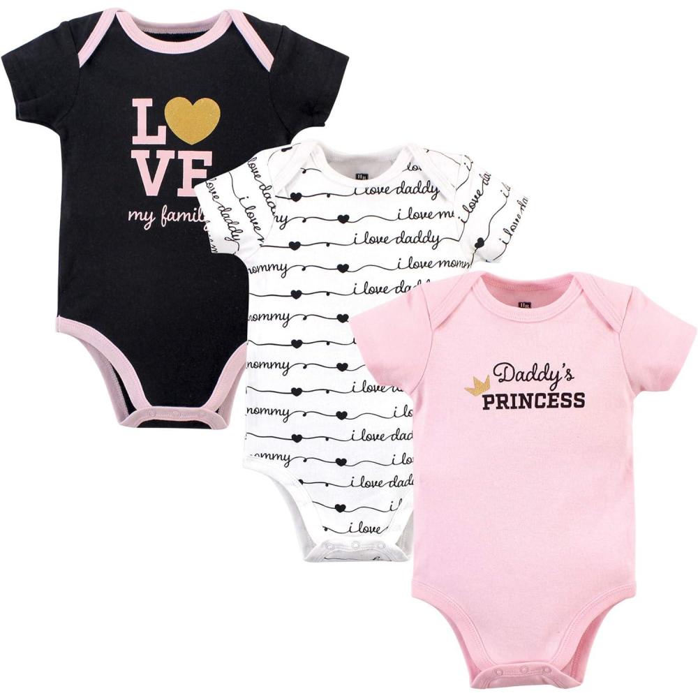 Hudson Baby baby-girls Cotton Bodysuits 3-pack(Gold Daddys Princess)
