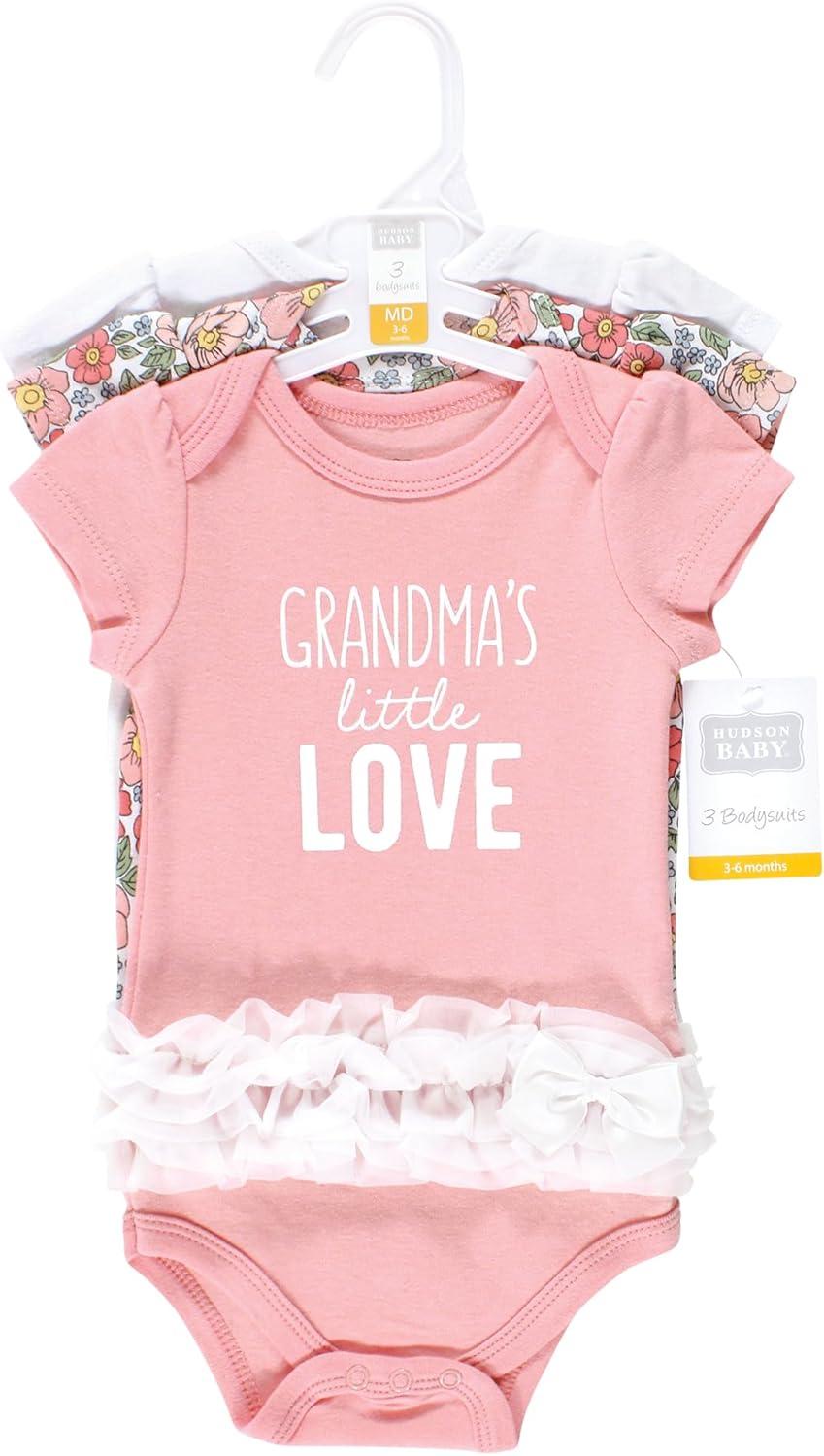 Hudson Baby baby-girls Cotton Bodysuits 3-pack(Grandmas Love Tutu)