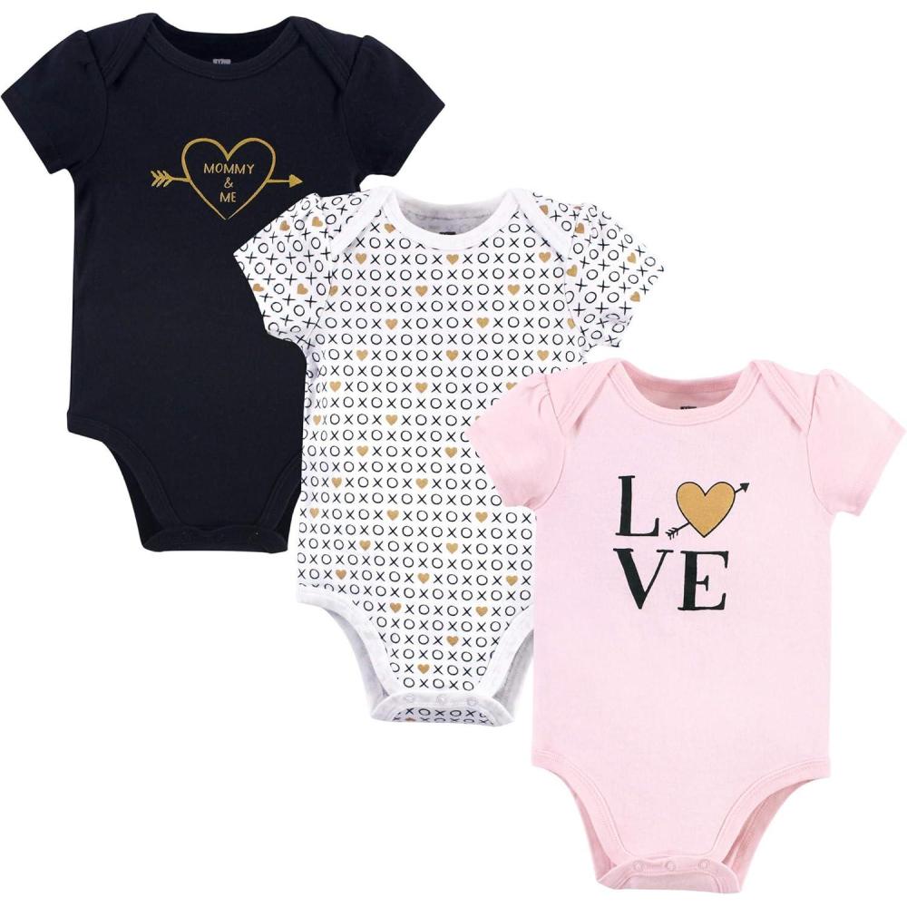 Hudson Baby baby-girls Cotton Bodysuits 3-pack(Love Xoxo)