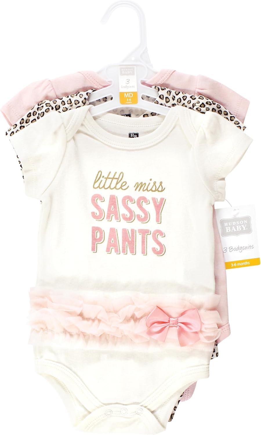 Hudson Baby baby-girls Cotton Bodysuits 3-pack(Miss Sassy Pants)