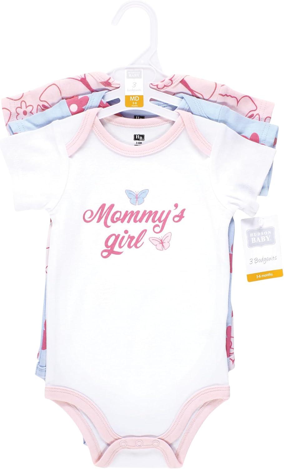 Hudson Baby baby-girls Cotton Bodysuits 3-pack(Mommys Girl Butterfly)