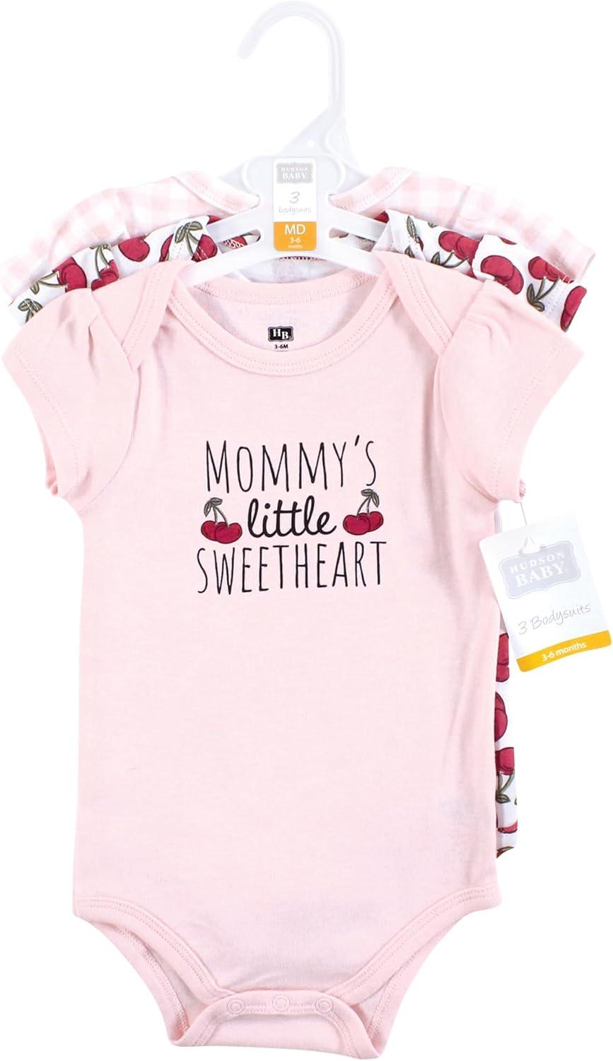 Hudson Baby baby-girls Cotton Bodysuits 3-pack(Mommys Sweetheart Cherry)