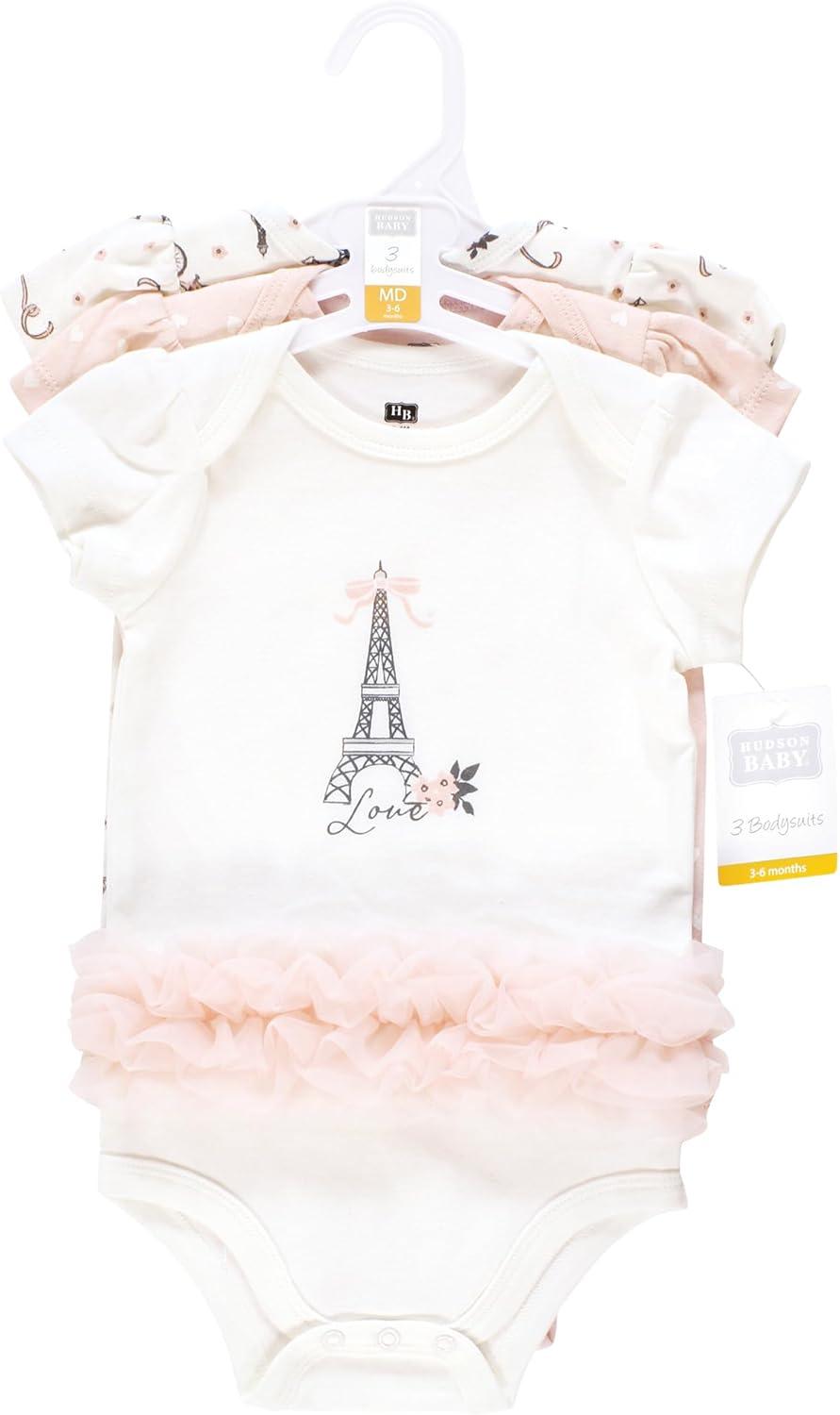 Hudson Baby baby-girls Cotton Bodysuits 3-pack(Paris Tutu)