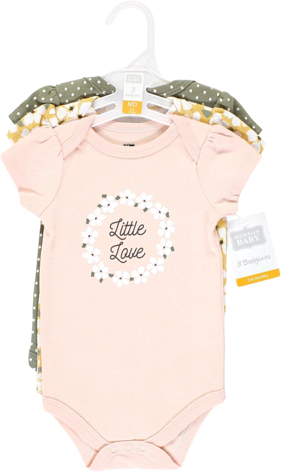 Hudson Baby baby-girls Cotton Bodysuits 3-pack(Peace Love Flowers)