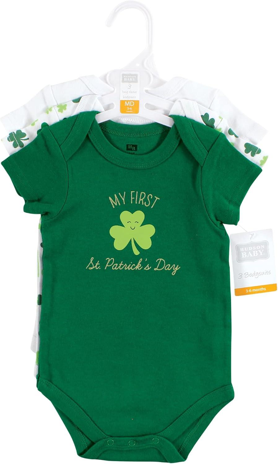 Hudson Baby baby-girls Cotton Bodysuits 3-pack(St Patricks Rainbow)