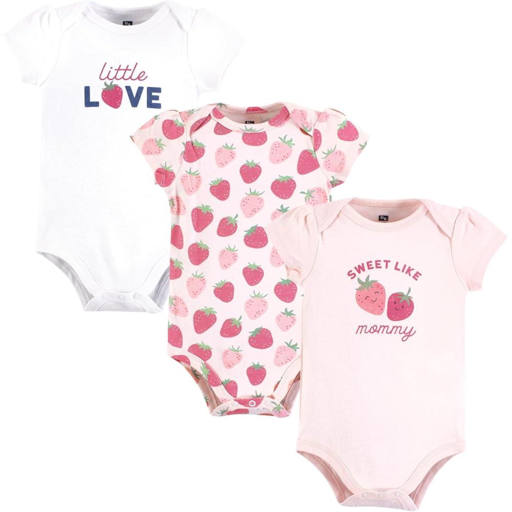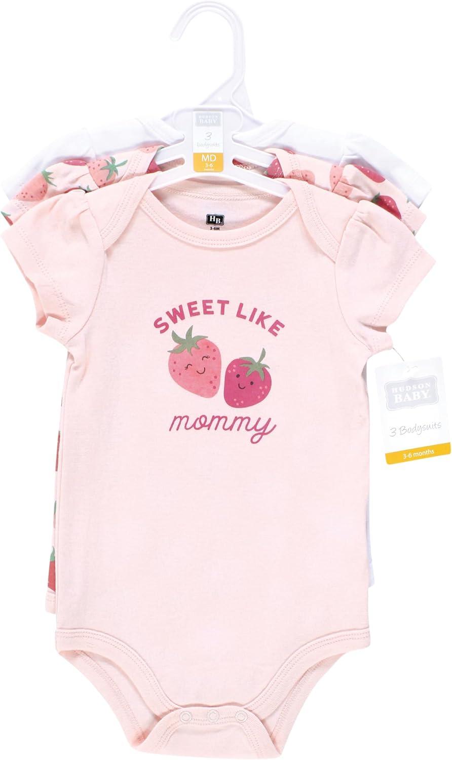 Hudson Baby baby-girls Cotton Bodysuits 3-pack(Strawberry Love)