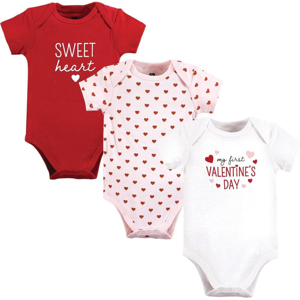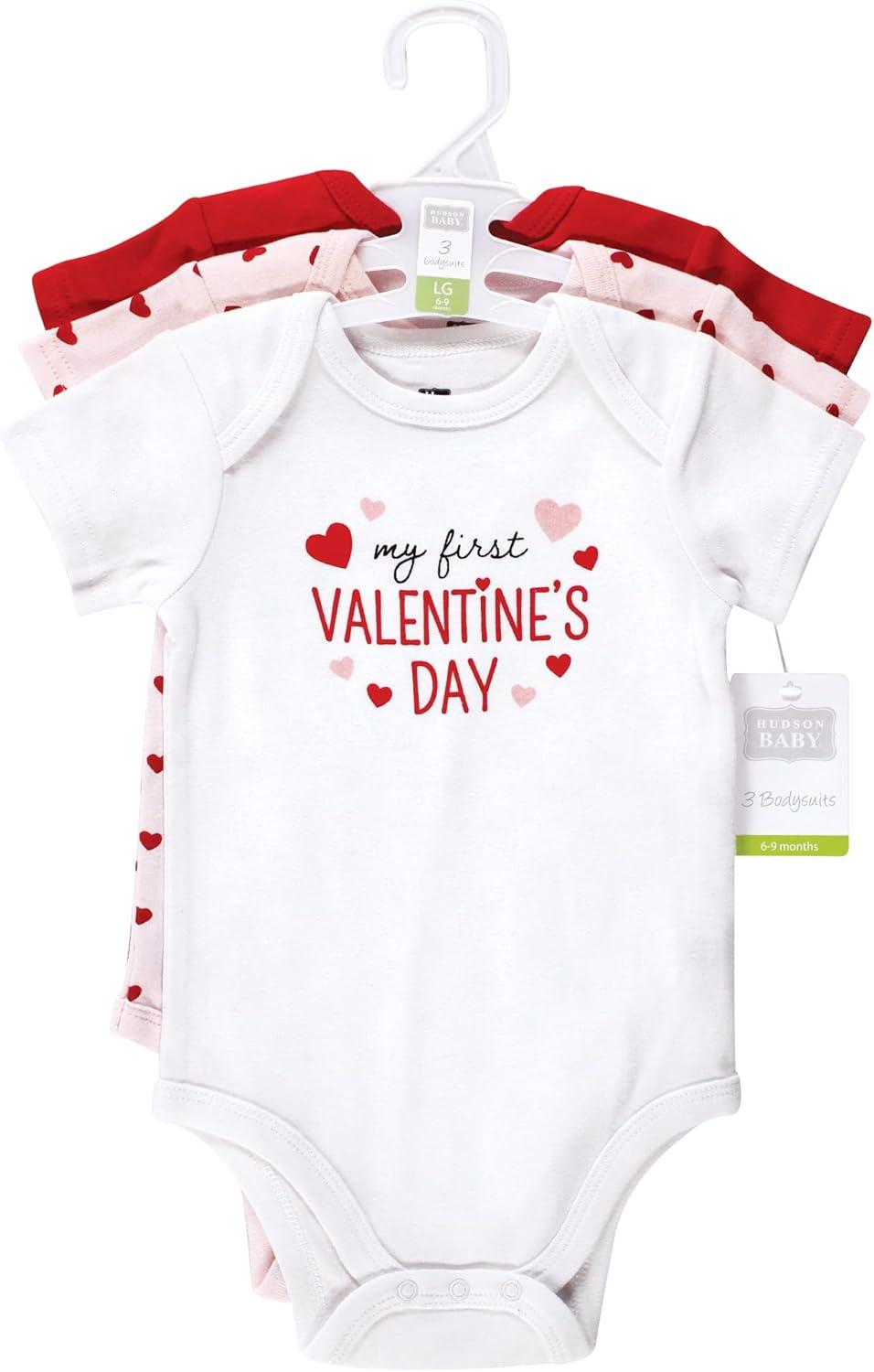 Hudson Baby baby-girls Cotton Bodysuits 3-pack(Valentine Sweetheart)