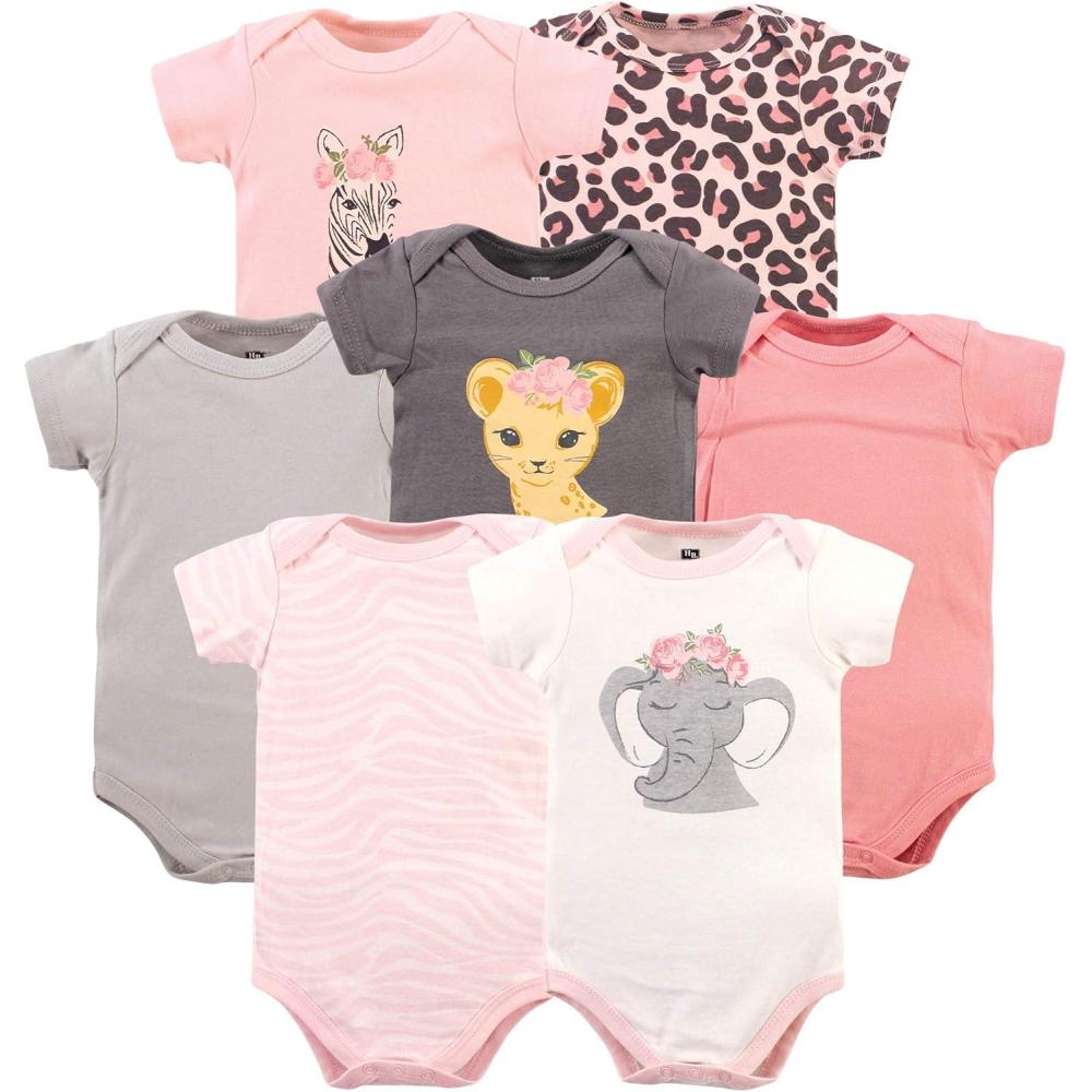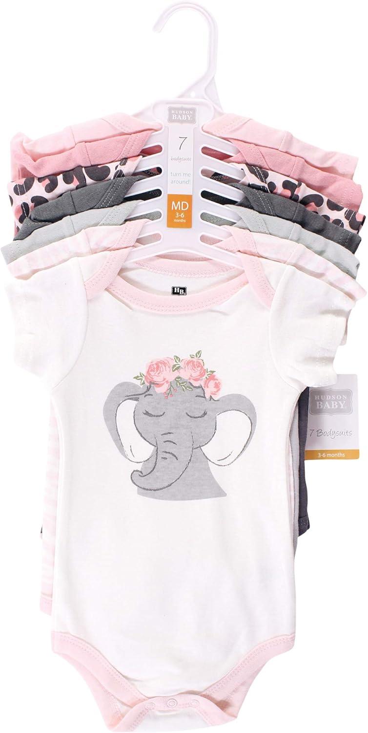 Hudson Baby baby-girls Cotton Bodysuits 7-pack(Girl Safari)