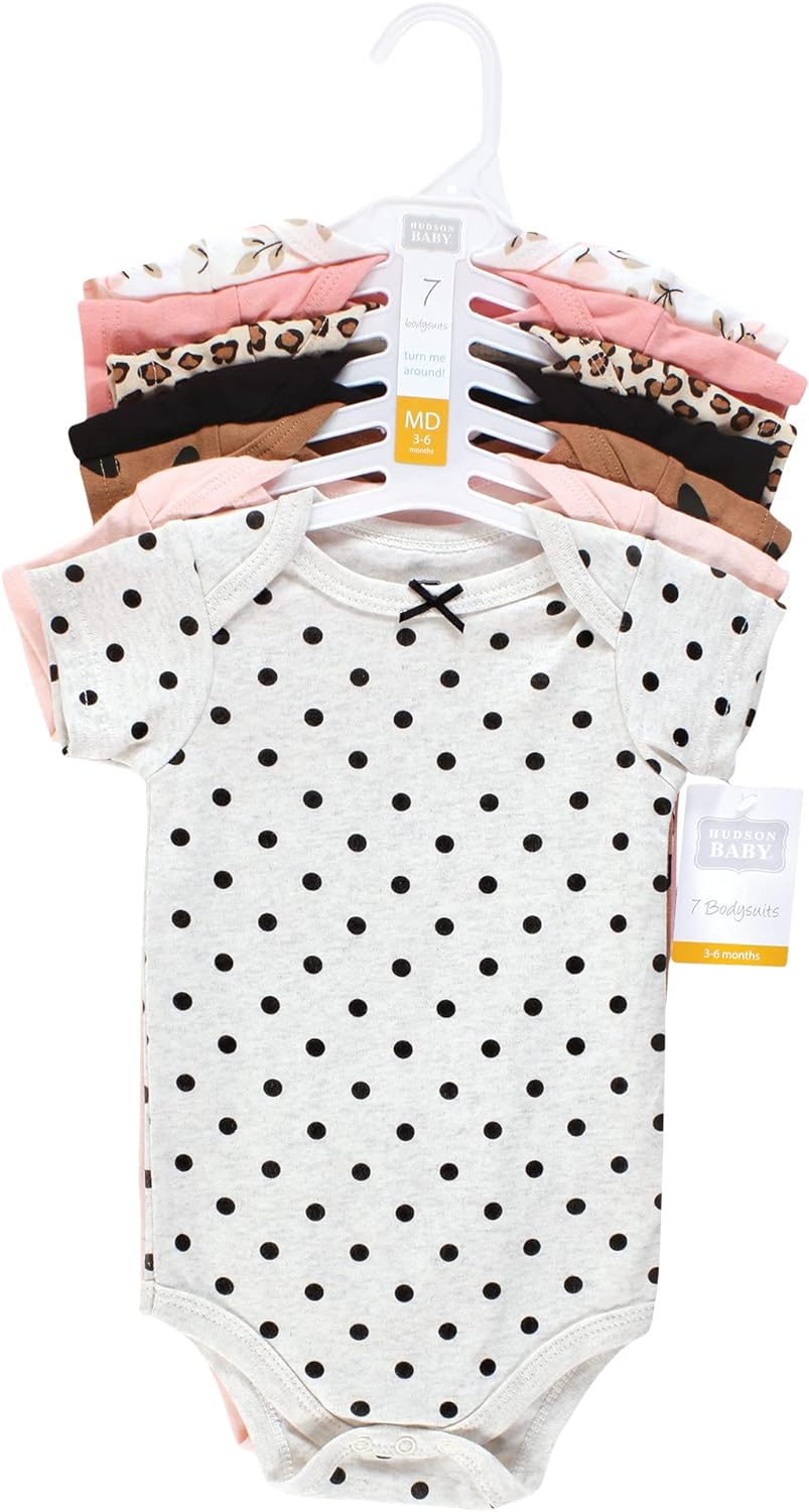 Hudson Baby baby-girls Cotton Bodysuits(Cinnamon Pink Prints)