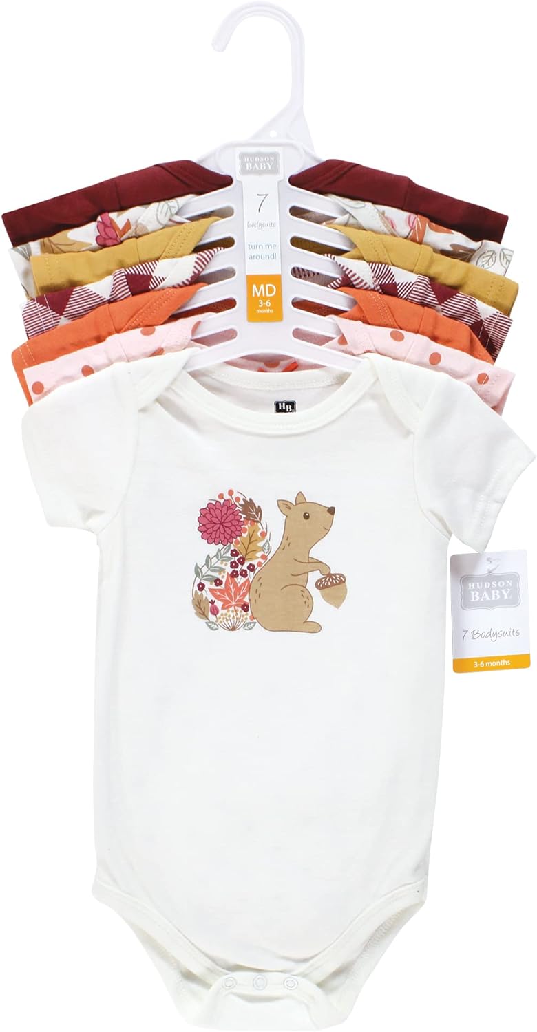 Hudson Baby baby-girls Cotton Bodysuits(Fall Squirrel)