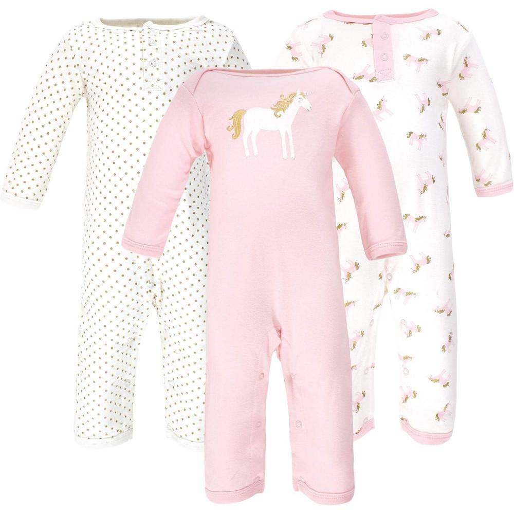 Hudson Baby baby-girls Cotton Coveralls(Gold Unicorn)