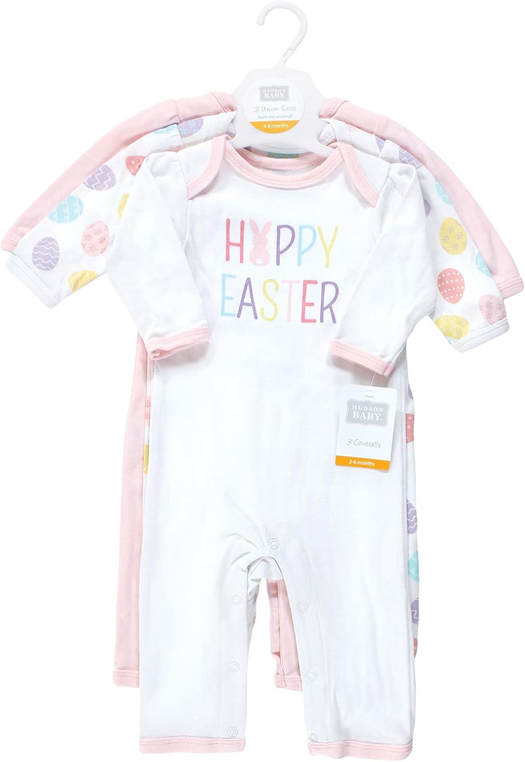 Hudson Baby baby-girls Cotton Coveralls(Happy Easter)