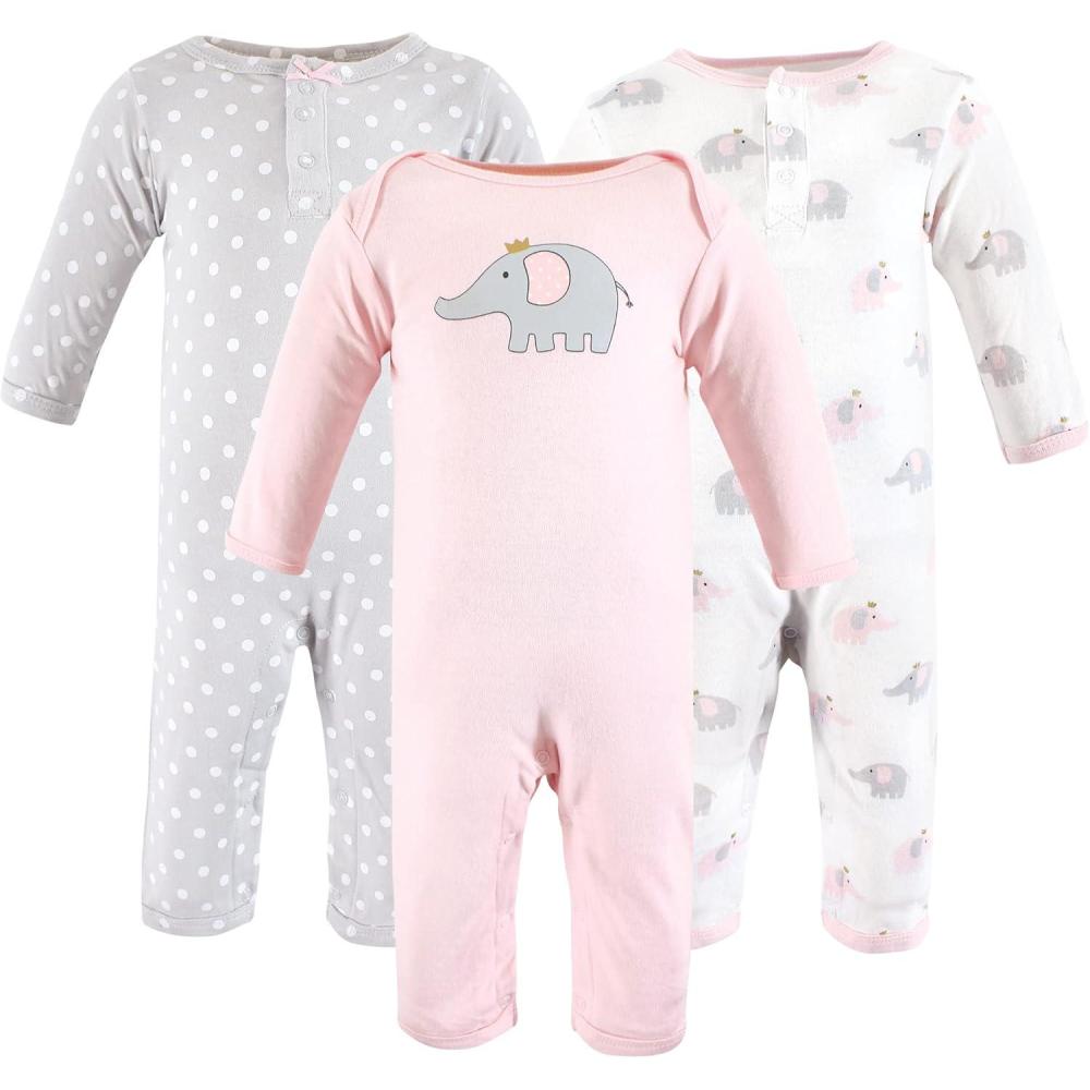 Hudson Baby baby-girls Cotton Coveralls(Pink Gray Elephant)
