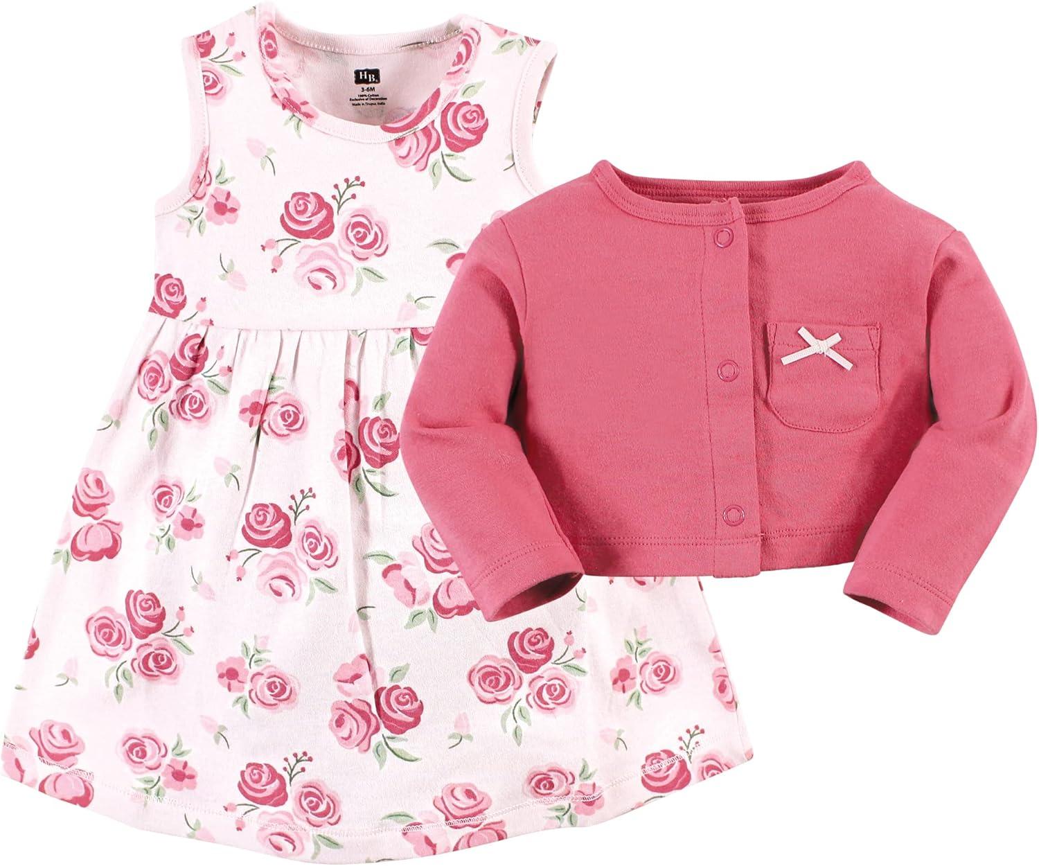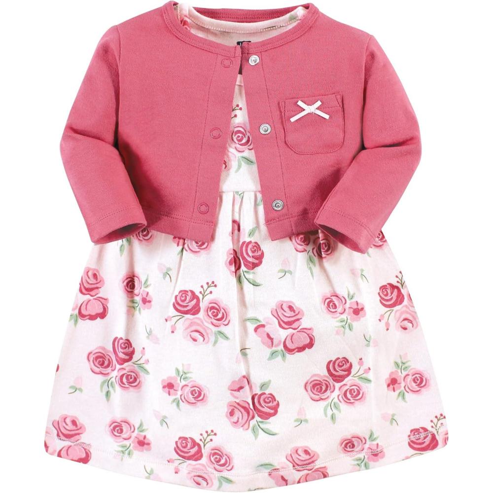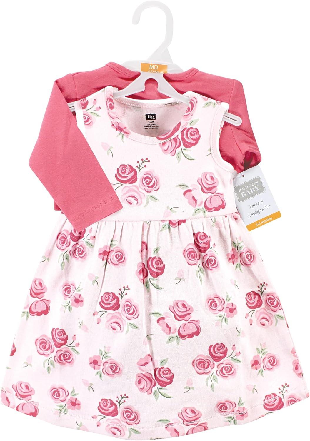 Hudson Baby Baby Girls’ Cotton Dress and Cardigan Set(Autumn Rose)