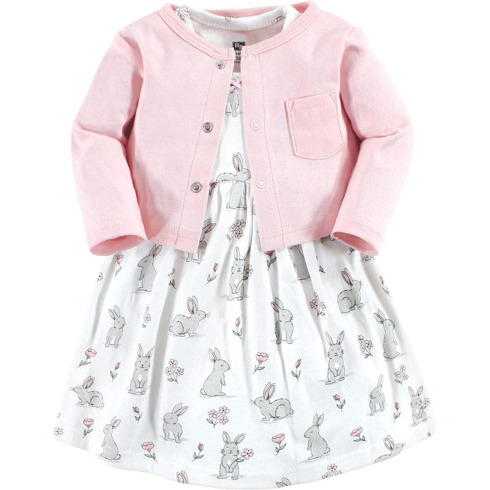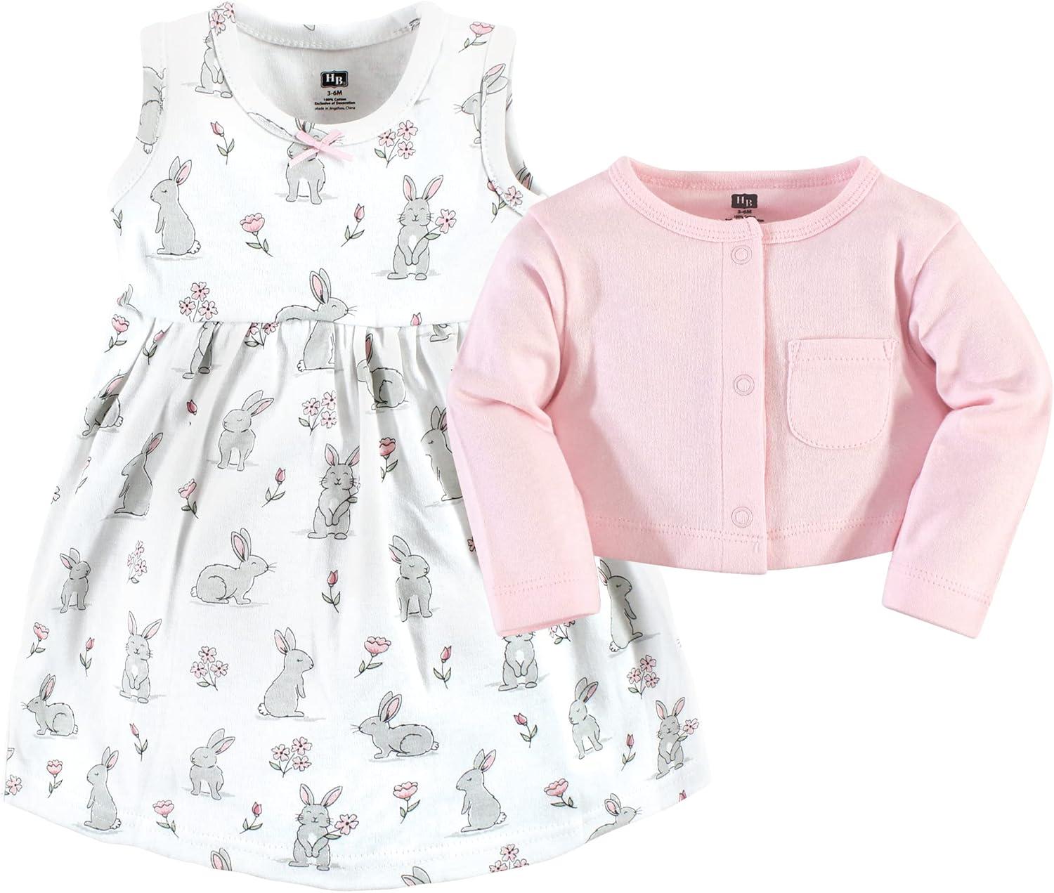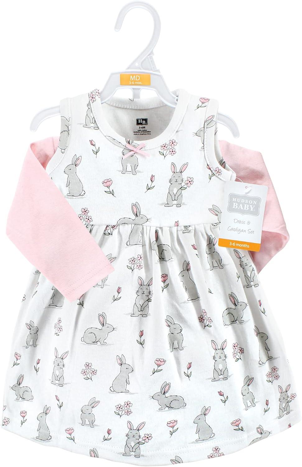 Hudson Baby Baby Girls’ Cotton Dress and Cardigan Set(Bunny Floral)
