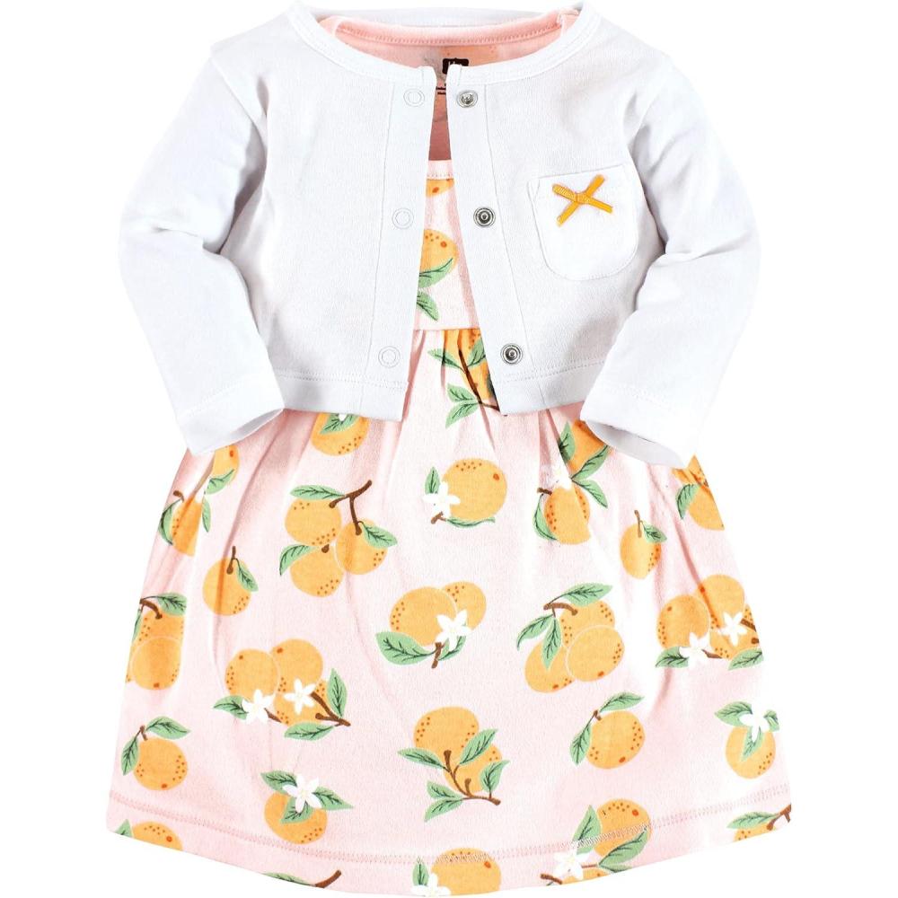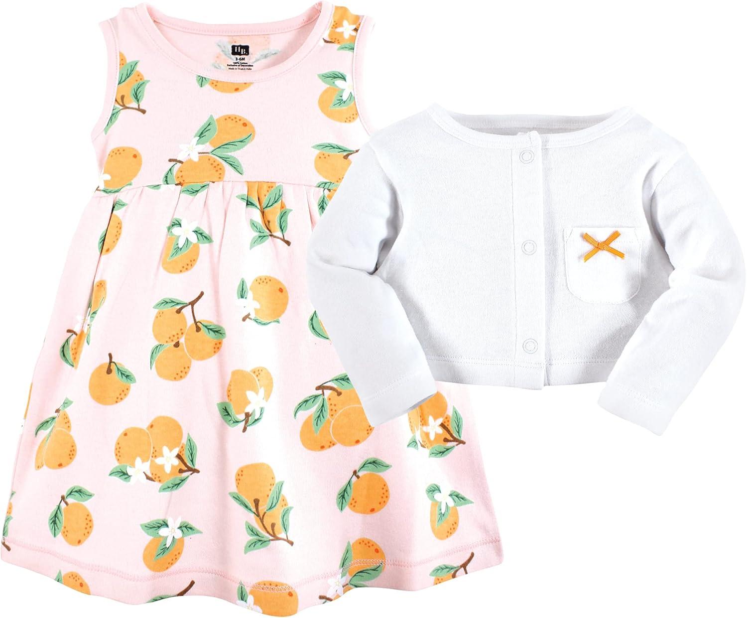 Hudson Baby Baby Girls’ Cotton Dress and Cardigan Set(Citrus Orange)
