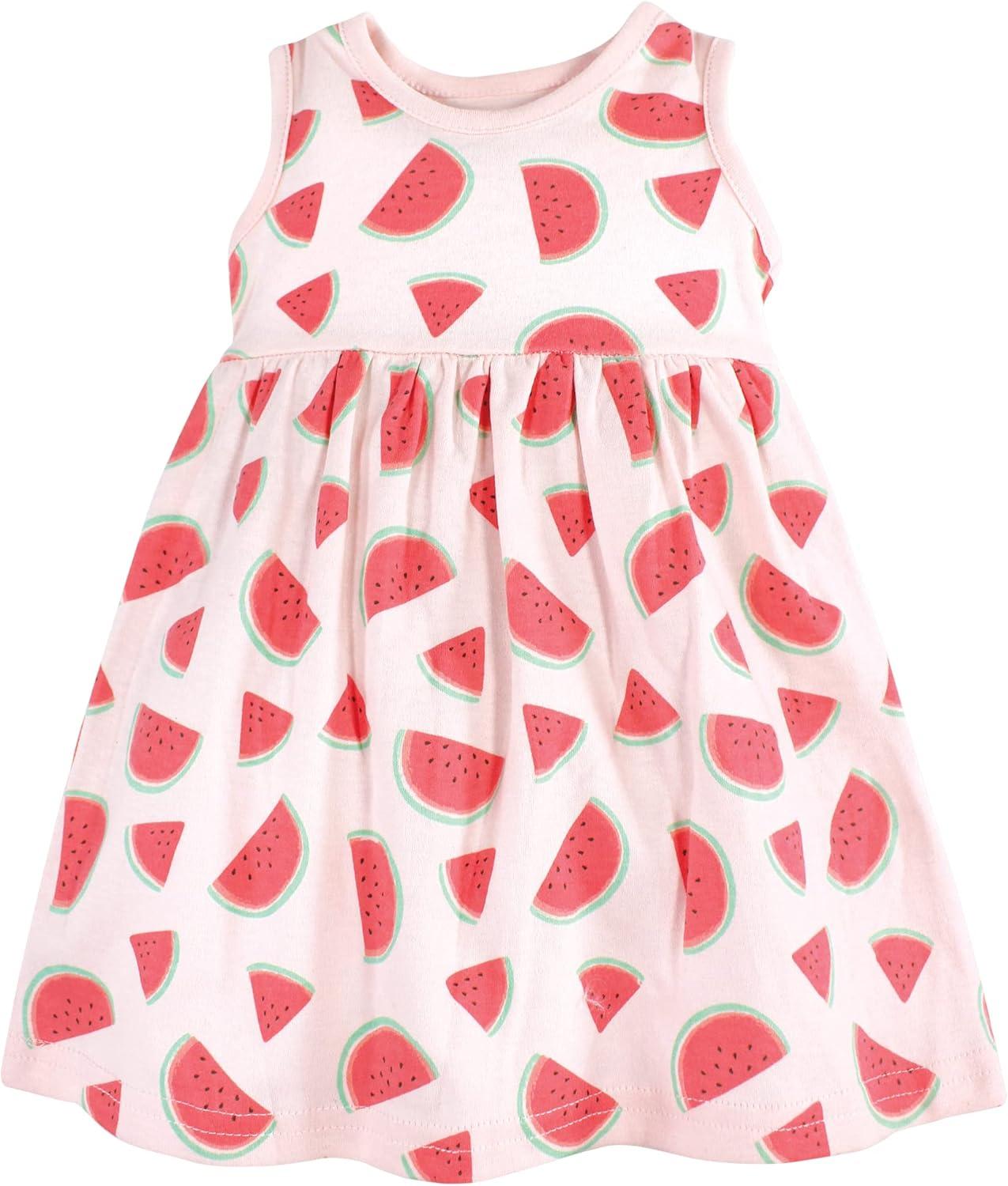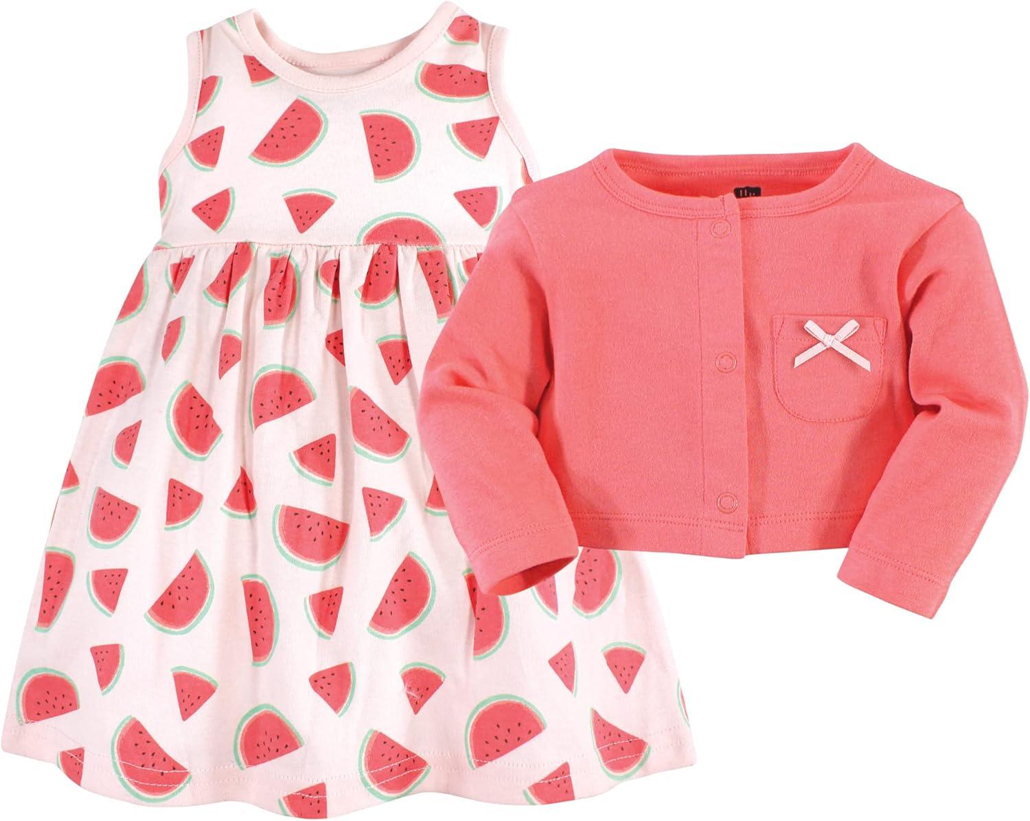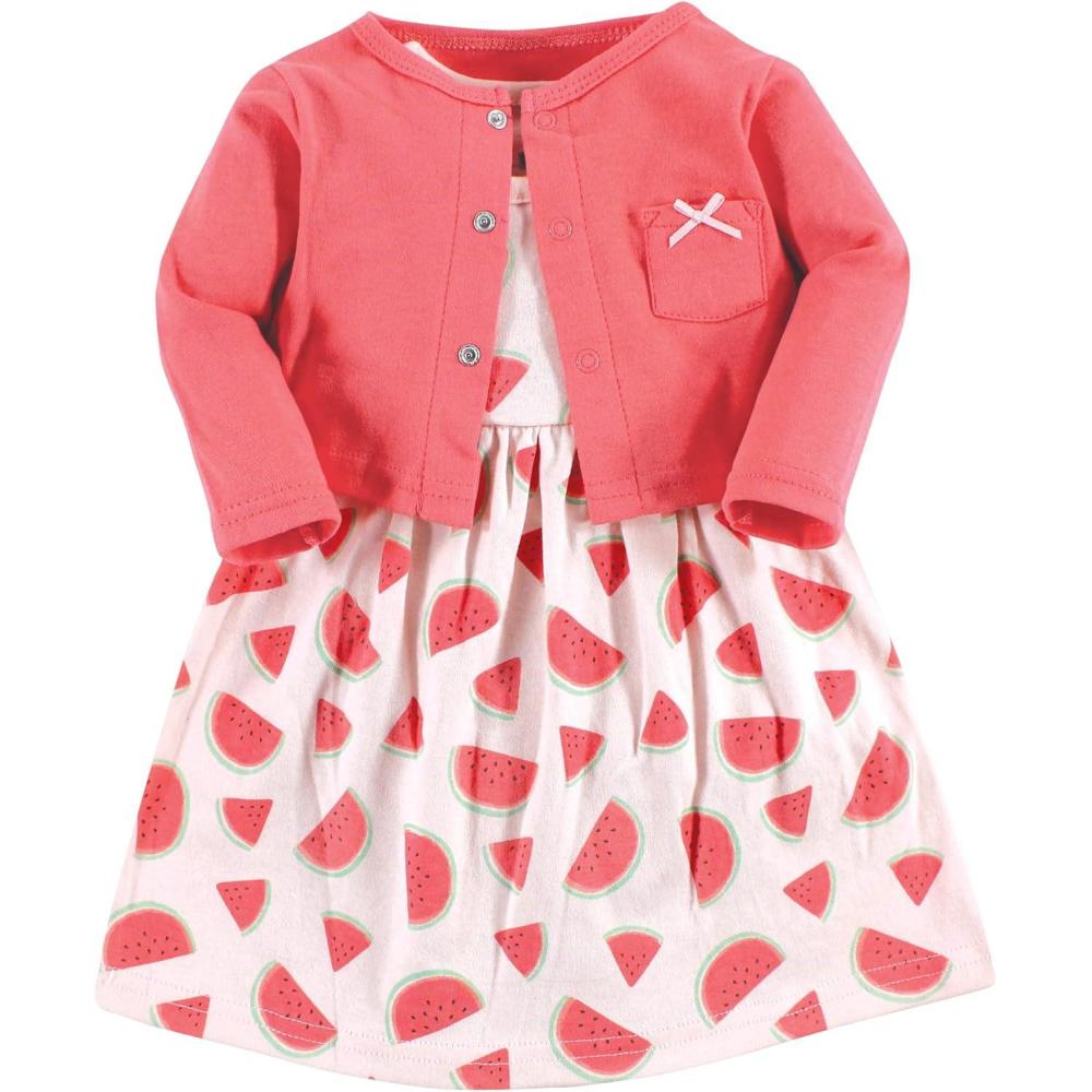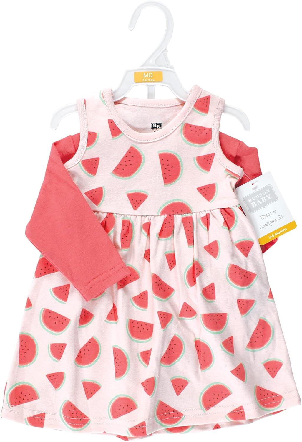 Hudson Baby Baby Girls’ Cotton Dress and Cardigan Set(Coral Watermelon)