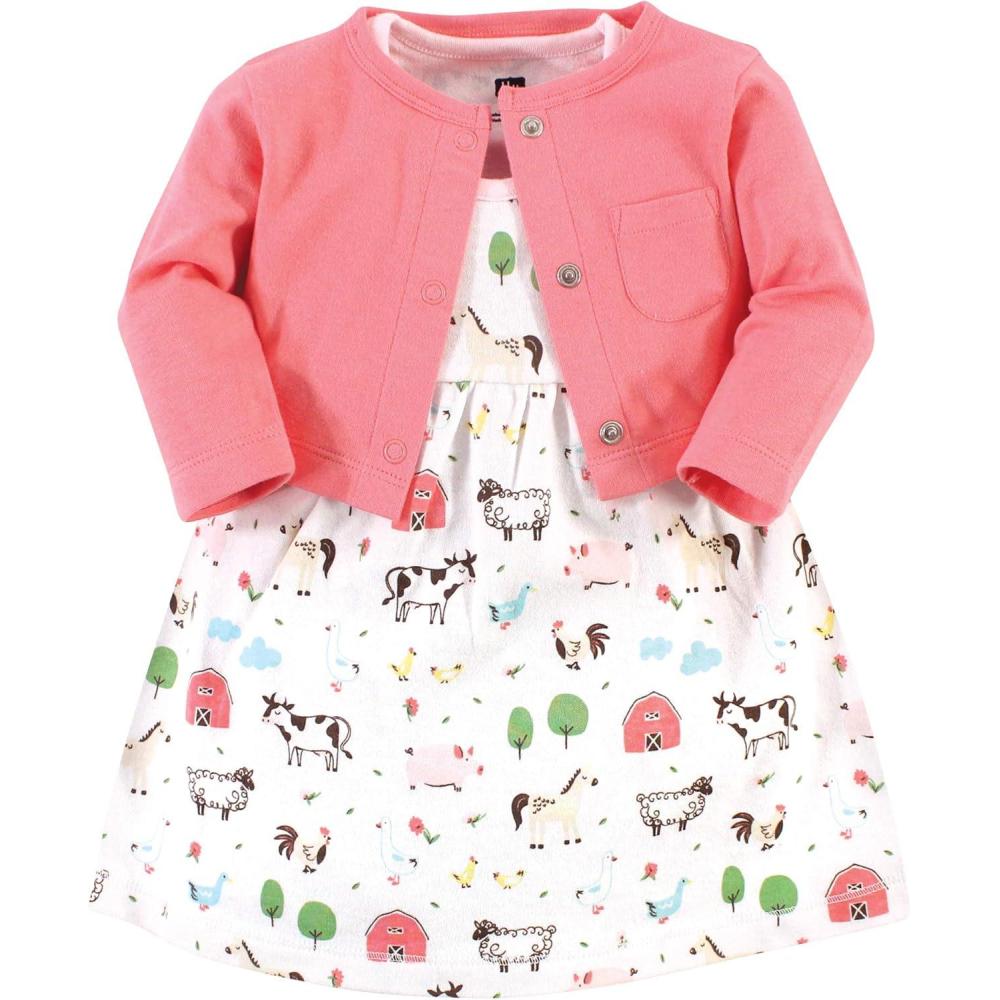 Hudson Baby Baby Girls’ Cotton Dress and Cardigan Set(Farm Animals)