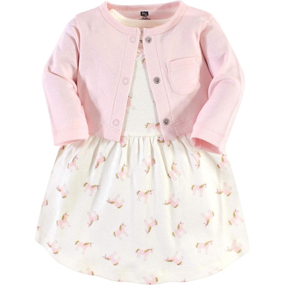 Hudson Baby Baby Girls’ Cotton Dress and Cardigan Set(Gold Unicorn)