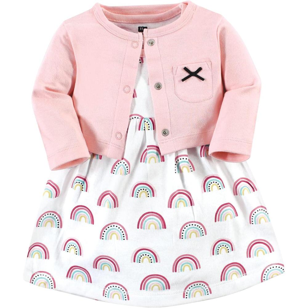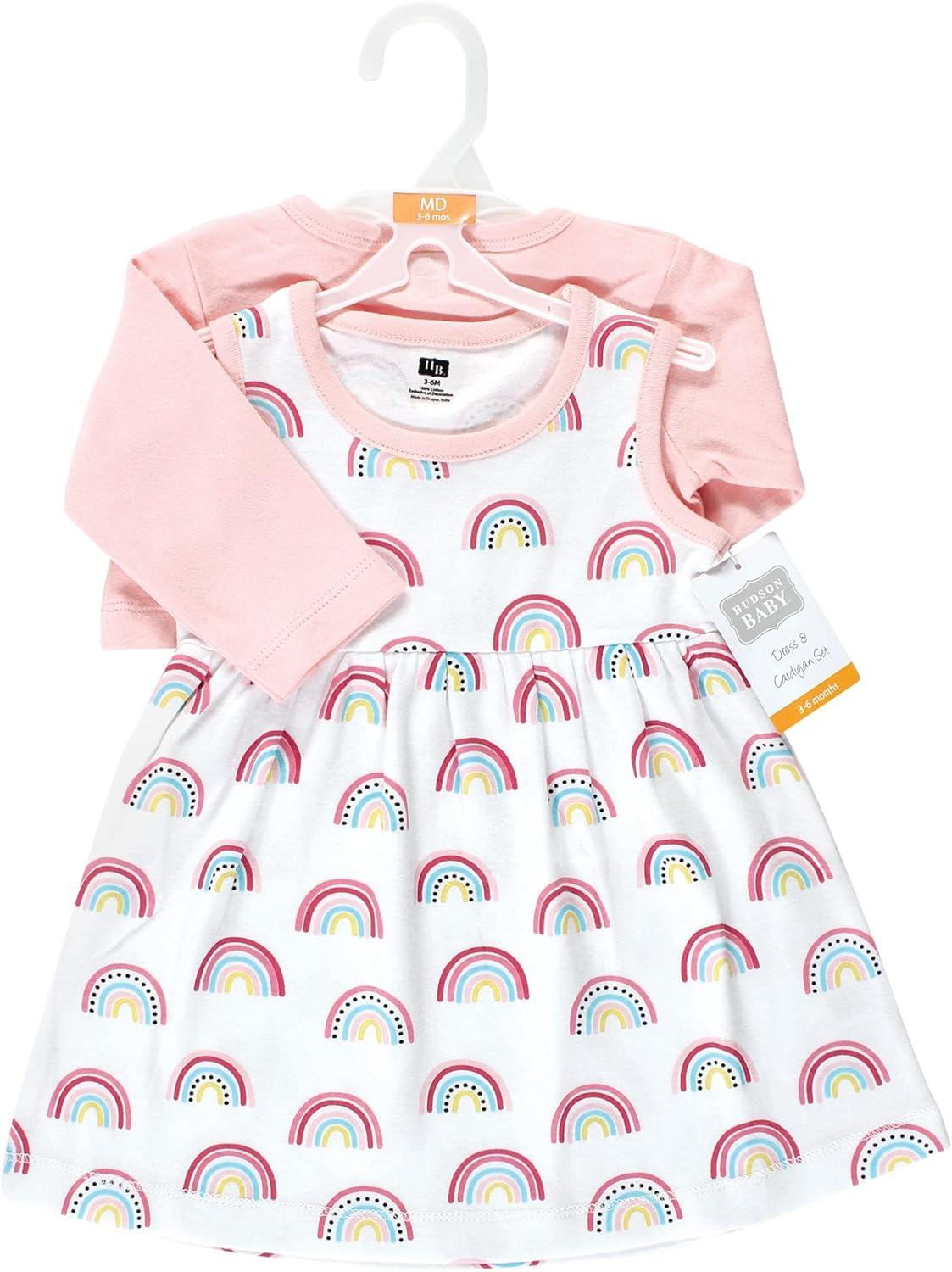 Hudson Baby Baby Girls’ Cotton Dress and Cardigan Set(Modern Rainbow)