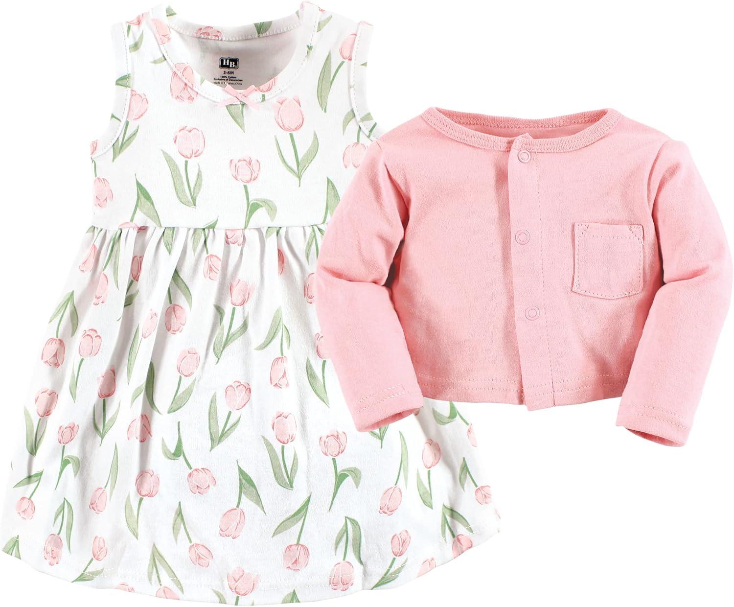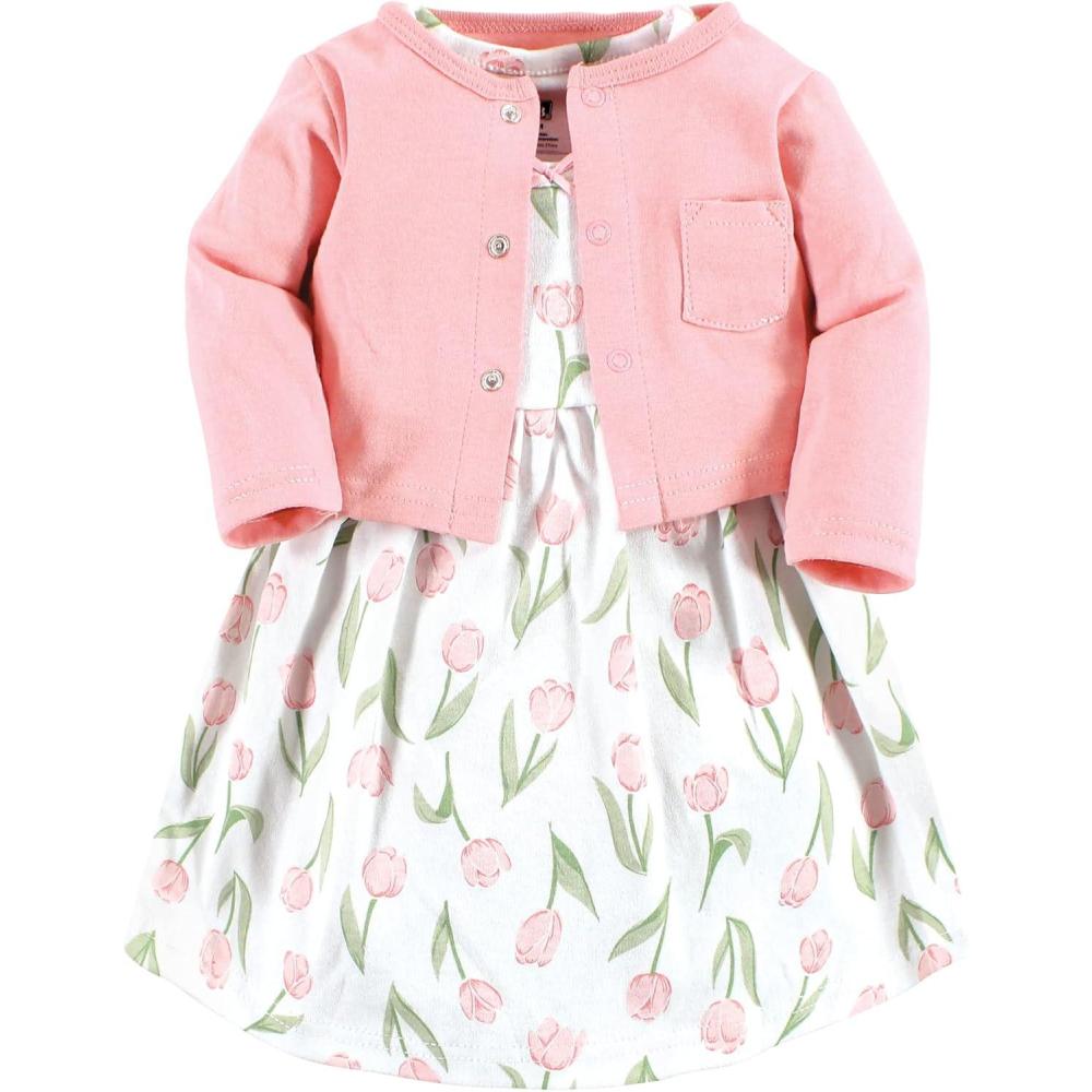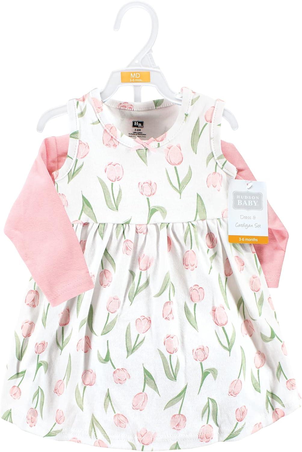 Hudson Baby Baby Girls’ Cotton Dress and Cardigan Set(Pink Tulips)