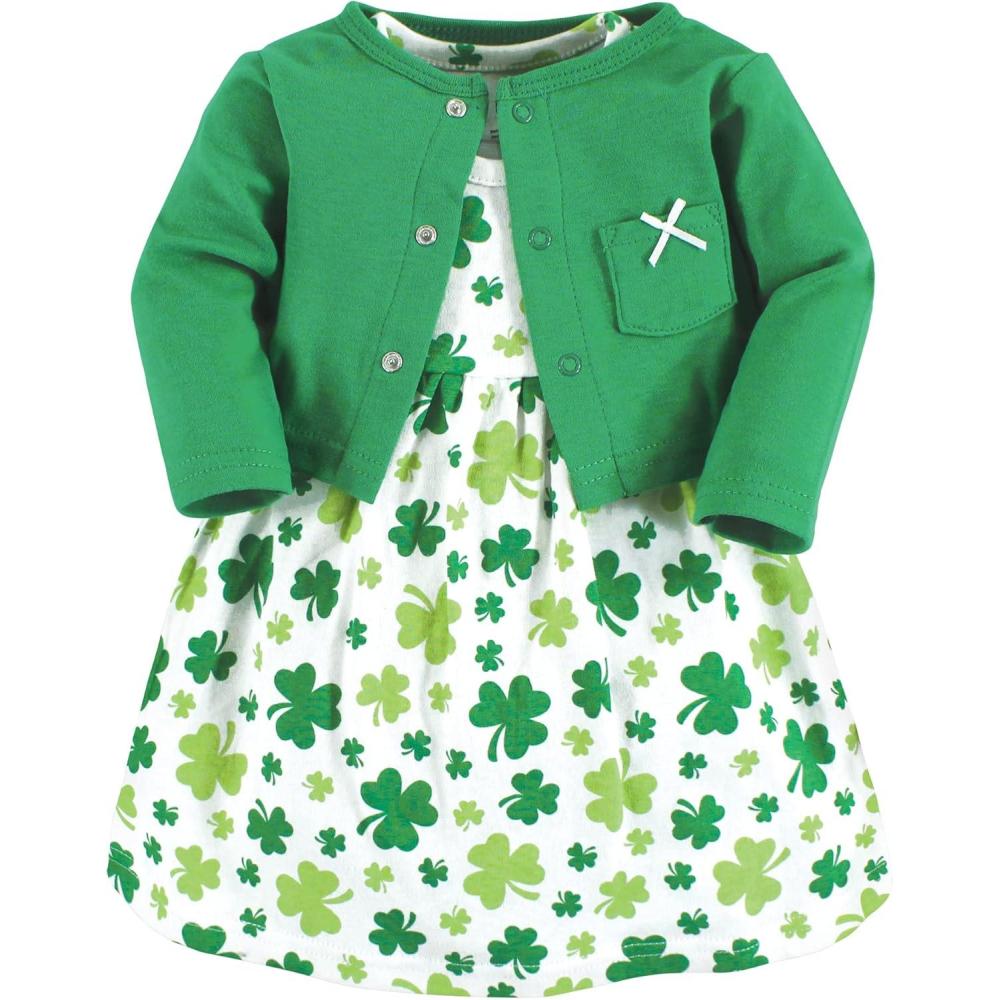 Hudson Baby Baby Girls’ Cotton Dress and Cardigan Set(Shamrocks)