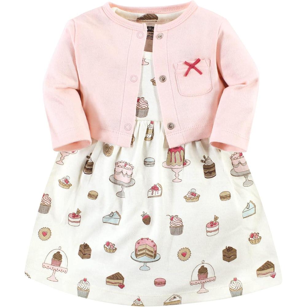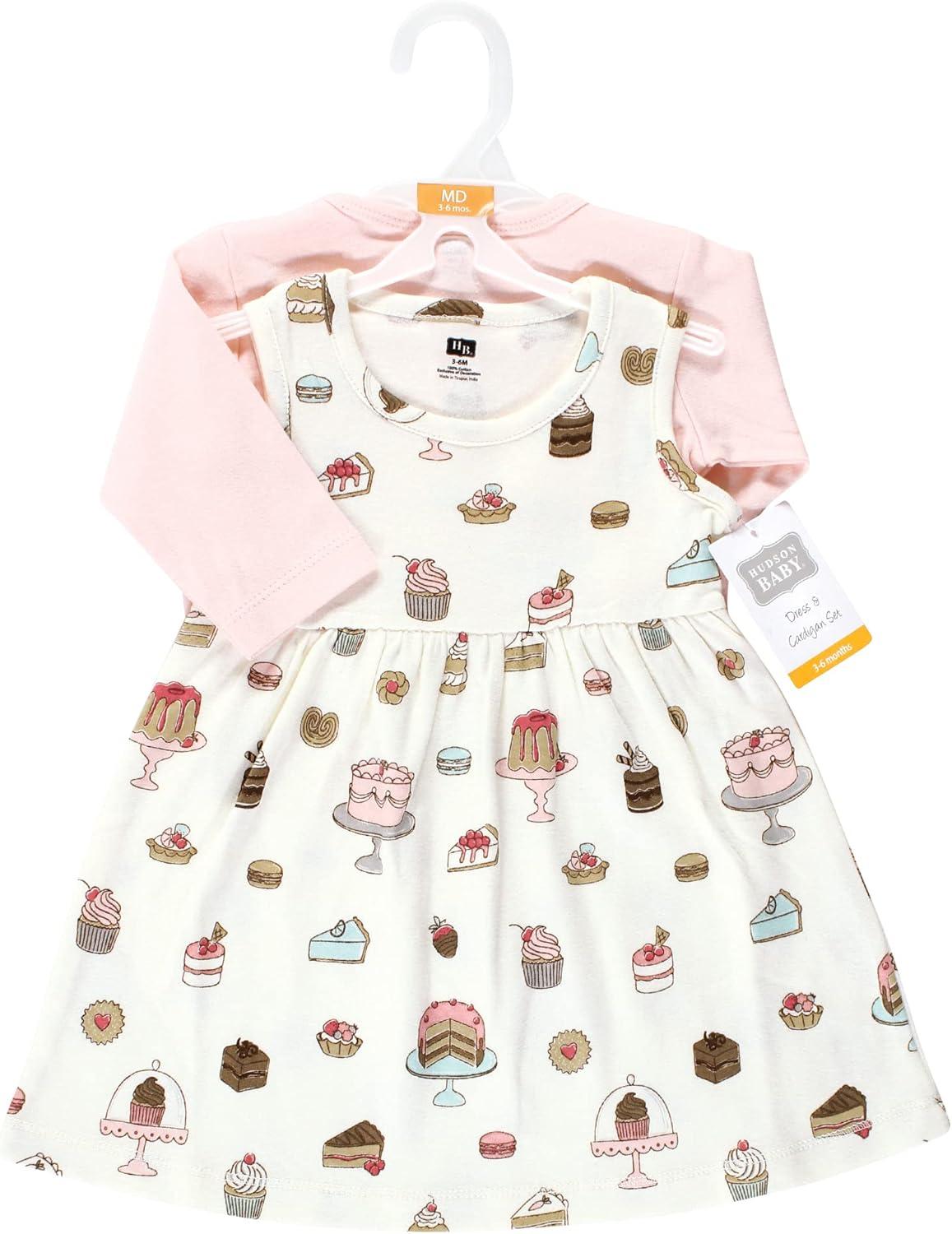 Hudson Baby Baby Girls’ Cotton Dress and Cardigan Set(Sweet Bakery)