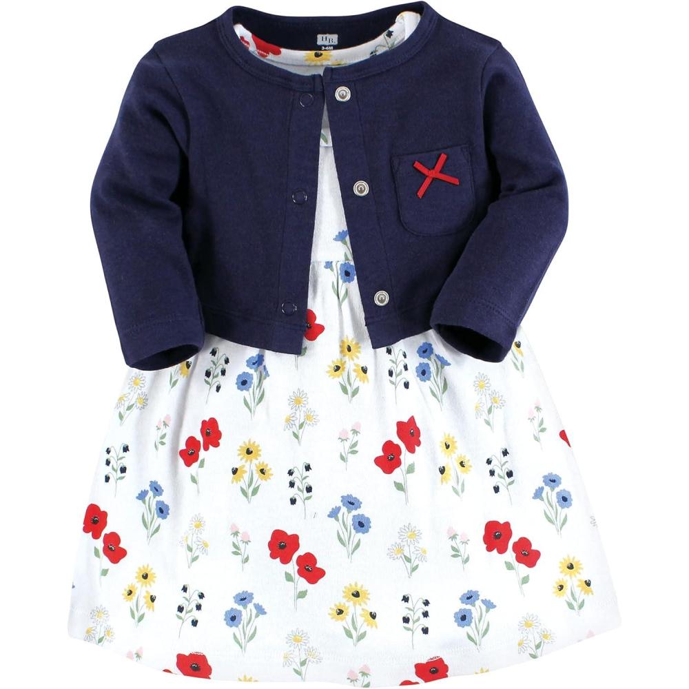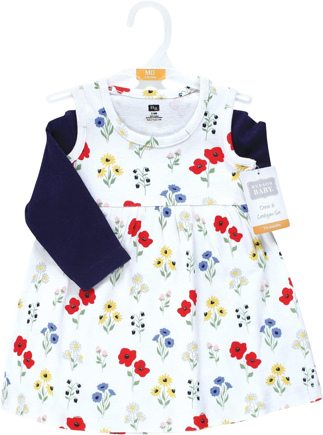 Hudson Baby Baby Girls’ Cotton Dress and Cardigan Set(Wildflower)