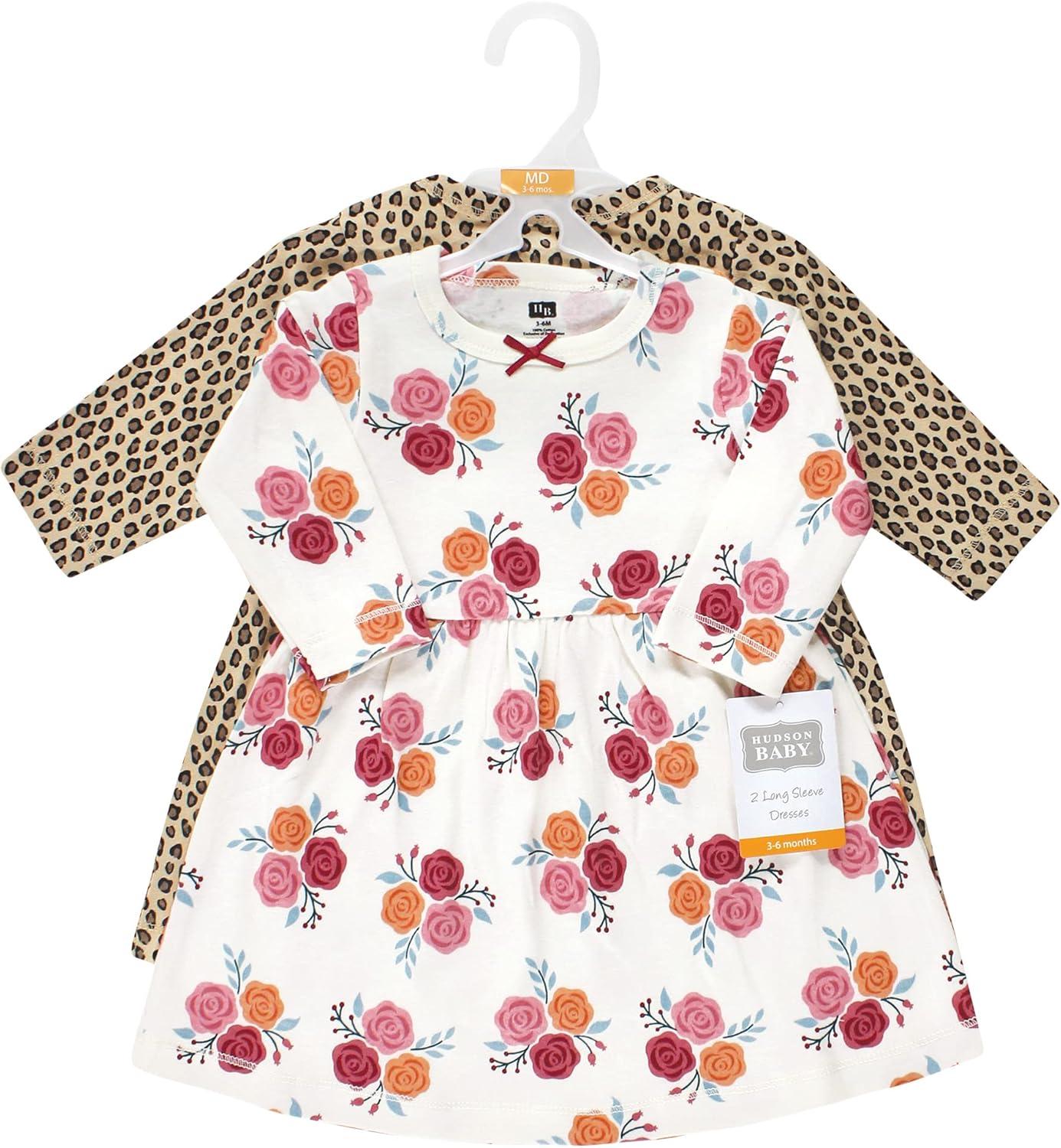 Hudson Baby Baby Girls’ Cotton Dresses(Multicolor Blush Rose Leopard)