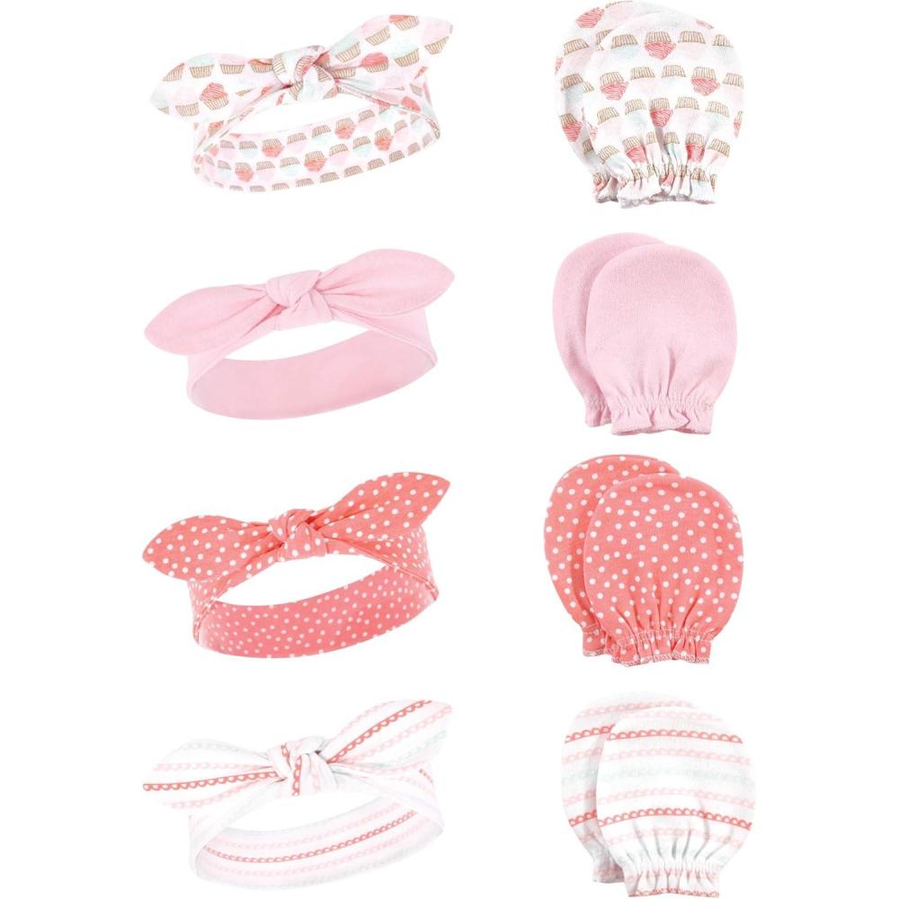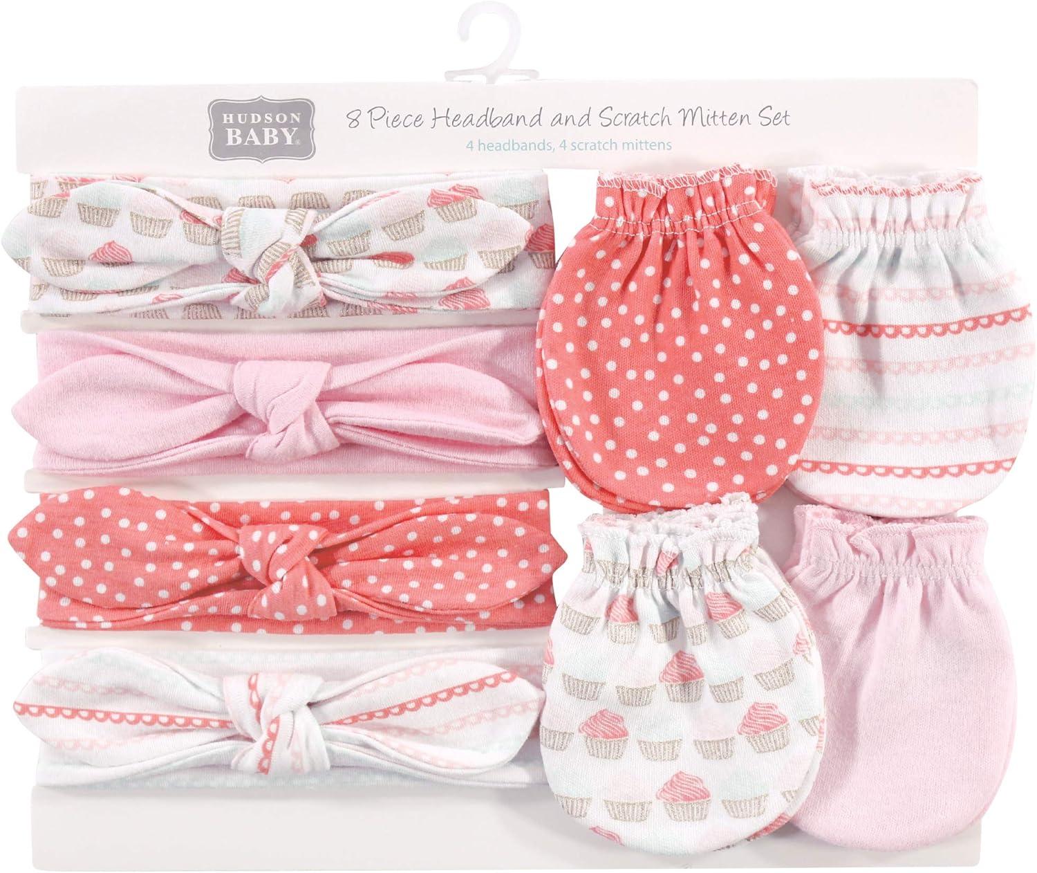 Hudson Baby Baby Girls’ Cotton Headband and Scratch Mitten Set(Cupcake)