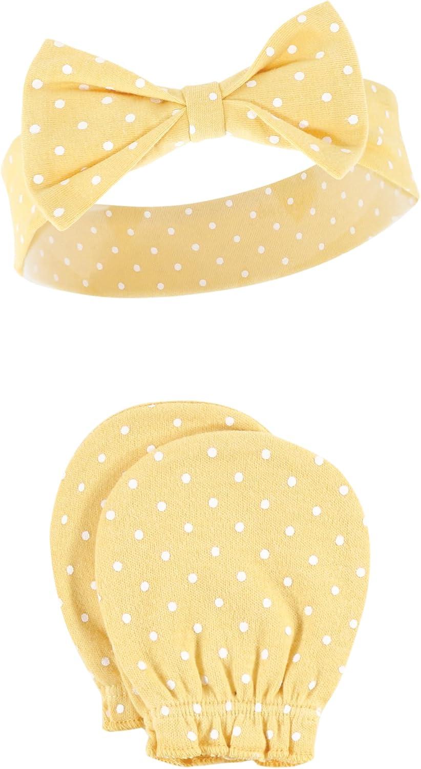 Hudson Baby headband and scratch mitten set is a perfect accessory set for your little girl. Each set comes with coordinating headbands and scratch mittens. Our headbands are a fun headwrap for your baby girl to look stylish with our adorable prints. Our scratch mittens are made with super soft cotton fabric and an elastic band around the wrist so the mittens stay on and protect your little one's face and body from any accidental scratches.