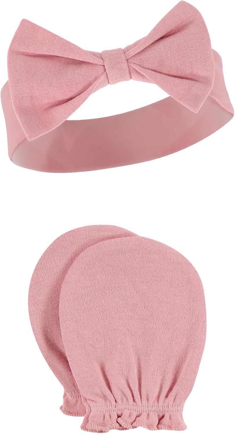Hudson Baby Baby Girls’ Cotton Headband and Scratch Mitten Set(Pink Gray Floral)