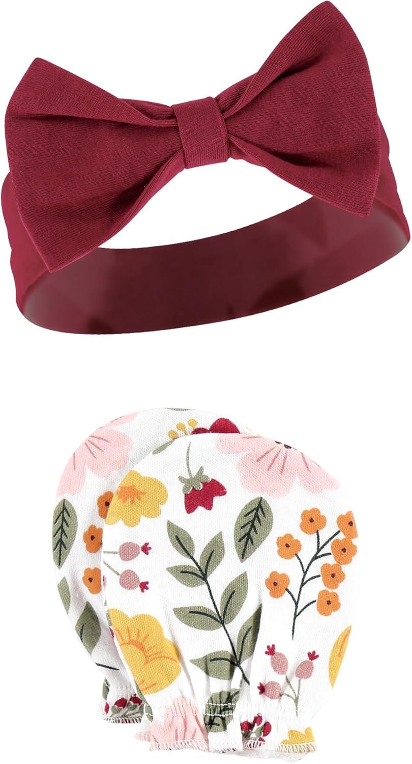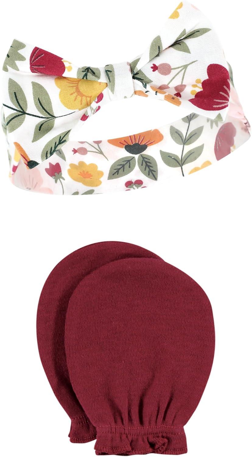 Hudson Baby Baby Girls’ Cotton Headband and Scratch Mitten Set(Fall Botanical)