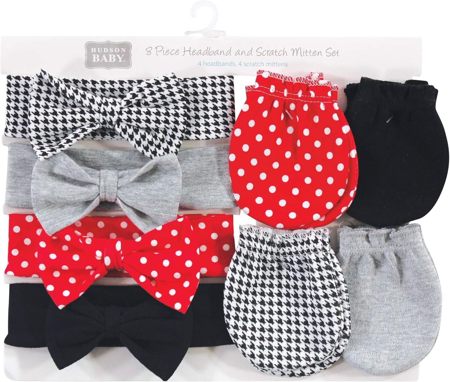 Hudson Baby headband and scratch mitten set is a perfect accessory set for your little girl. Each set comes with coordinating headbands and scratch mittens. Our headbands are a fun headwrap for your baby girl to look stylish with our adorable prints. Our scratch mittens are made with super soft cotton fabric and an elastic band around the wrist so the mittens stay on and protect your little one's face and body from any accidental scratches.