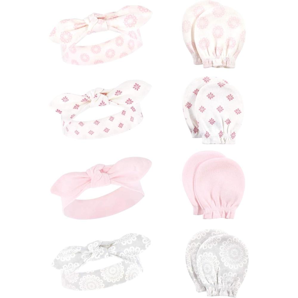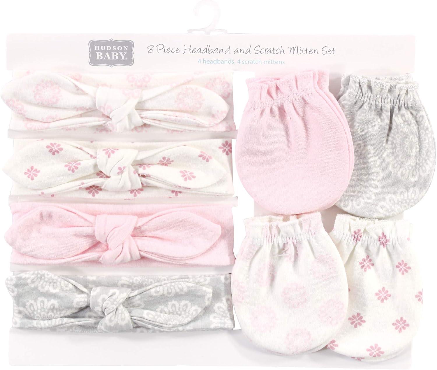 Hudson Baby headband and scratch mitten set is a perfect accessory set for your little girl. Each set comes with coordinating headbands and scratch mittens. Our headbands are a fun headwrap for your baby girl to look stylish with our adorable prints. Our scratch mittens are made with super soft cotton fabric and an elastic band around the wrist so the mittens stay on and protect your little one's face and body from any accidental scratches.