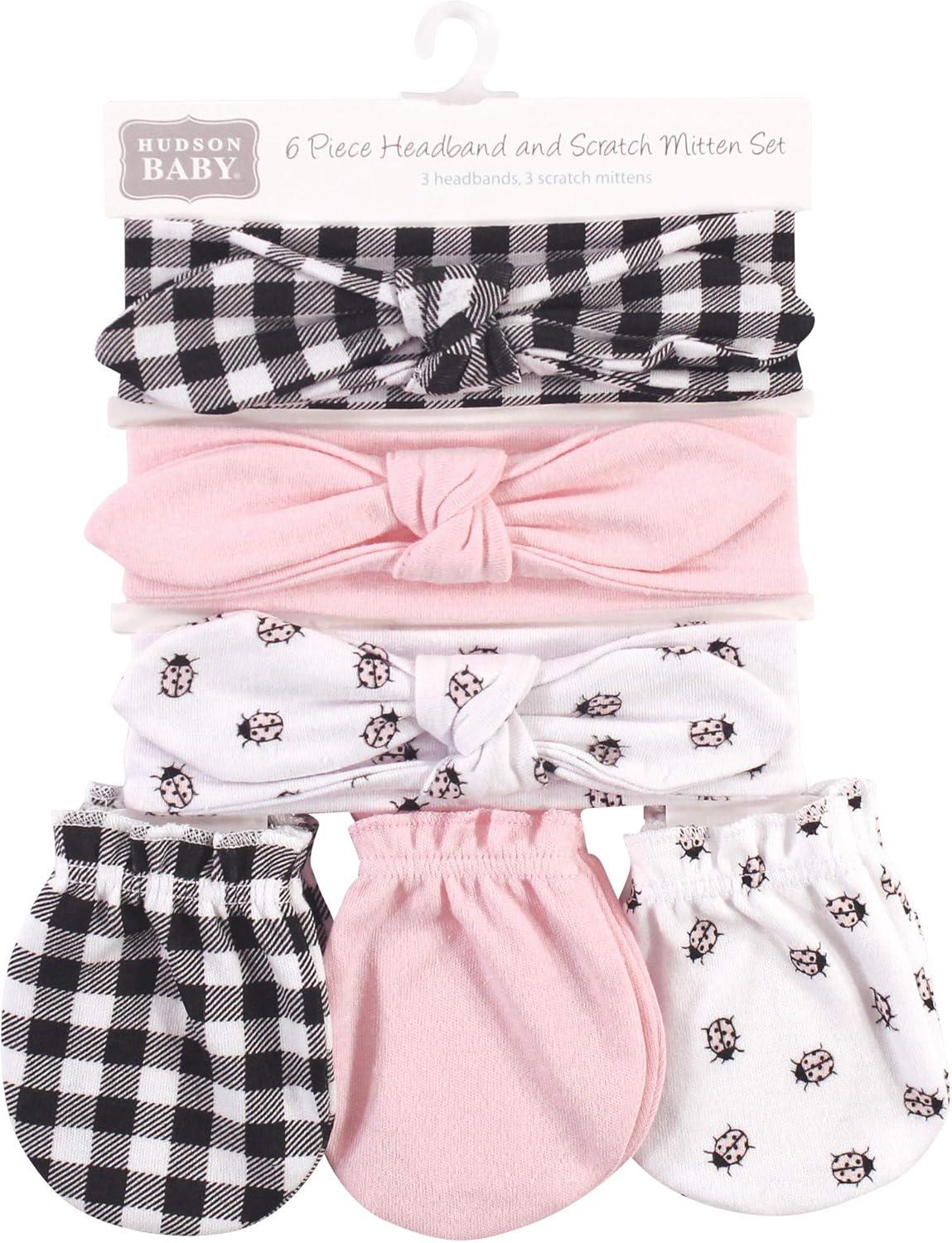 Hudson Baby Baby Girls’ Cotton Headband and Scratch Mitten Set(Lady Bug)