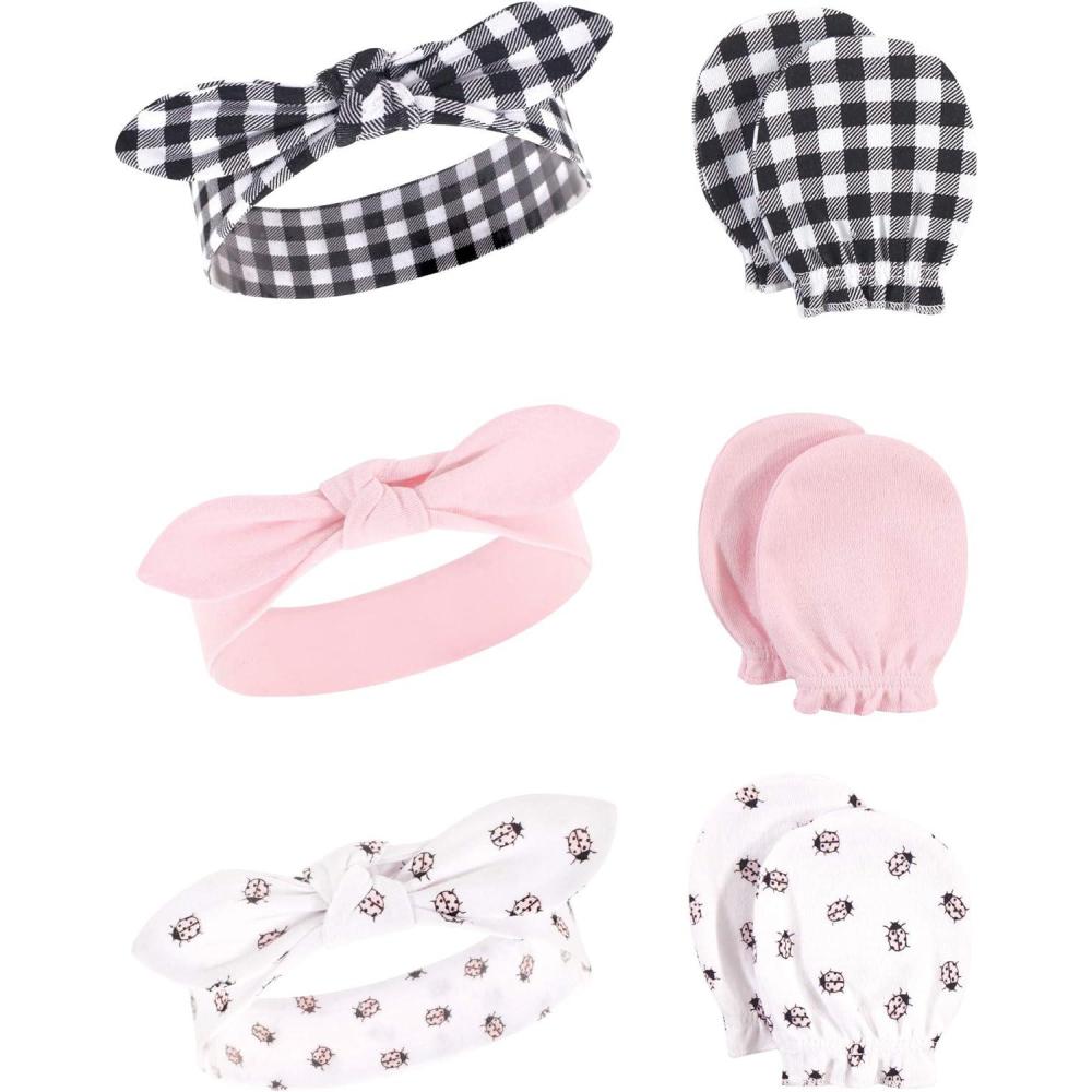 Hudson Baby Baby Girls’ Cotton Headband and Scratch Mitten Set(Houndstooth)