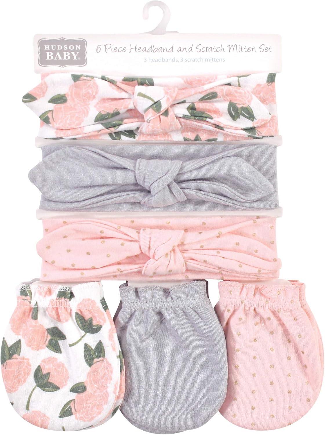 Hudson Baby Baby Girls’ Cotton Headband and Scratch Mitten Set(Pink Peony)