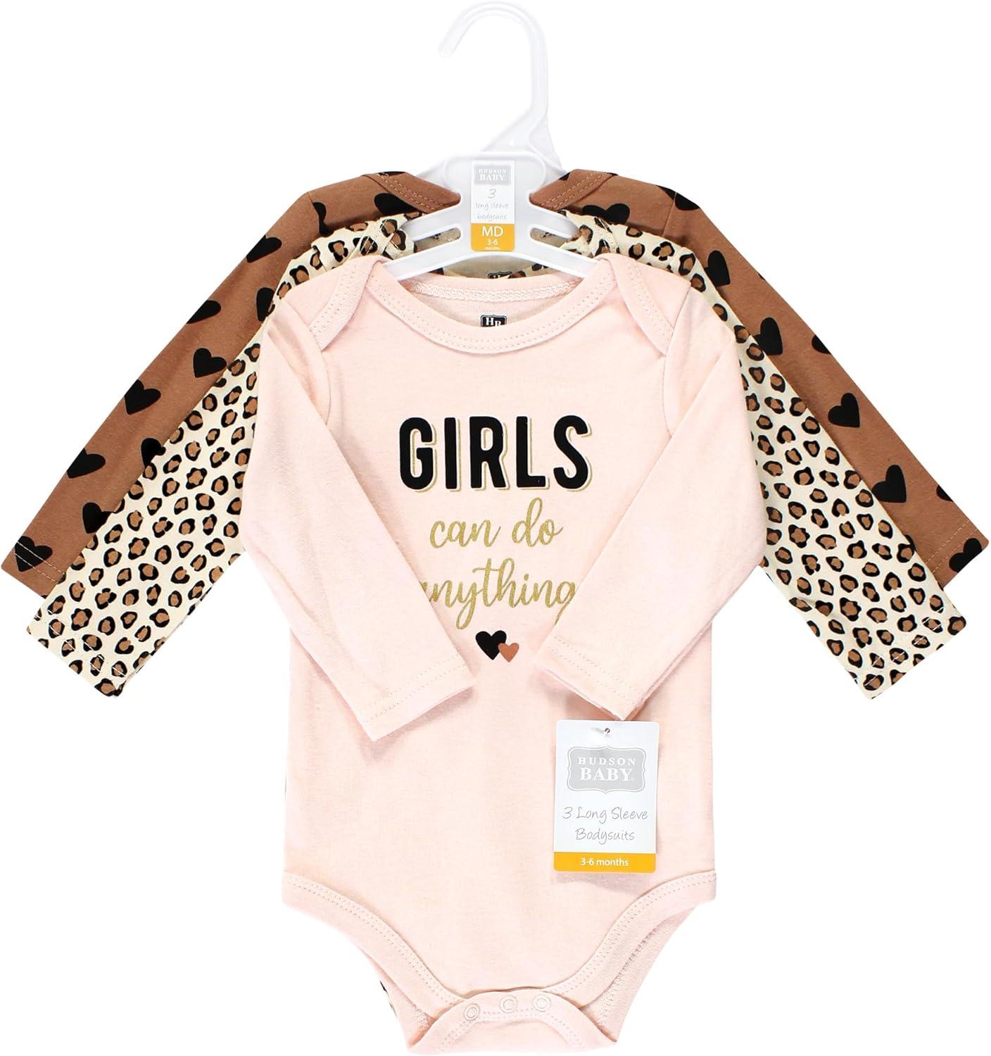 Hudson Baby baby-girls Cotton Long-sleeve Bodysuits 3-pack(Cinnamon Hearts)