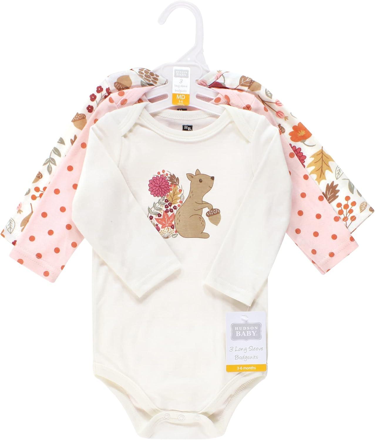 Hudson Baby baby-girls Cotton Long-sleeve Bodysuits 3-pack(Fall Squirrel)