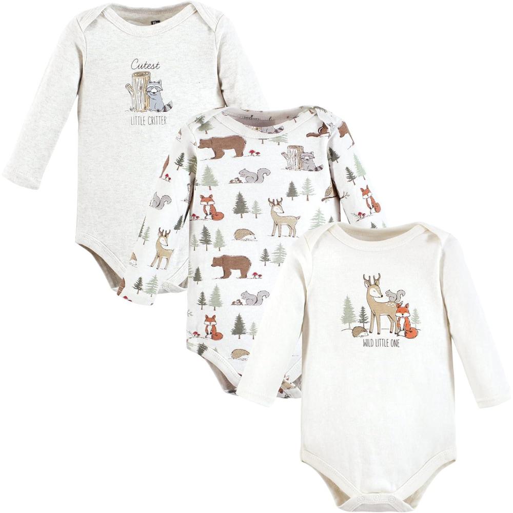 Hudson Baby baby-girls Cotton Long-sleeve Bodysuits 3-pack(Forest Animals)
