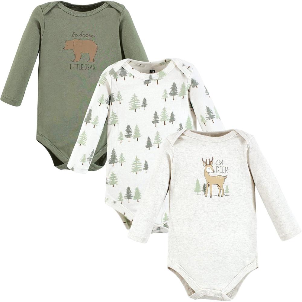 Hudson Baby baby-girls Cotton Long-sleeve Bodysuits 3-pack(Forest Deer)