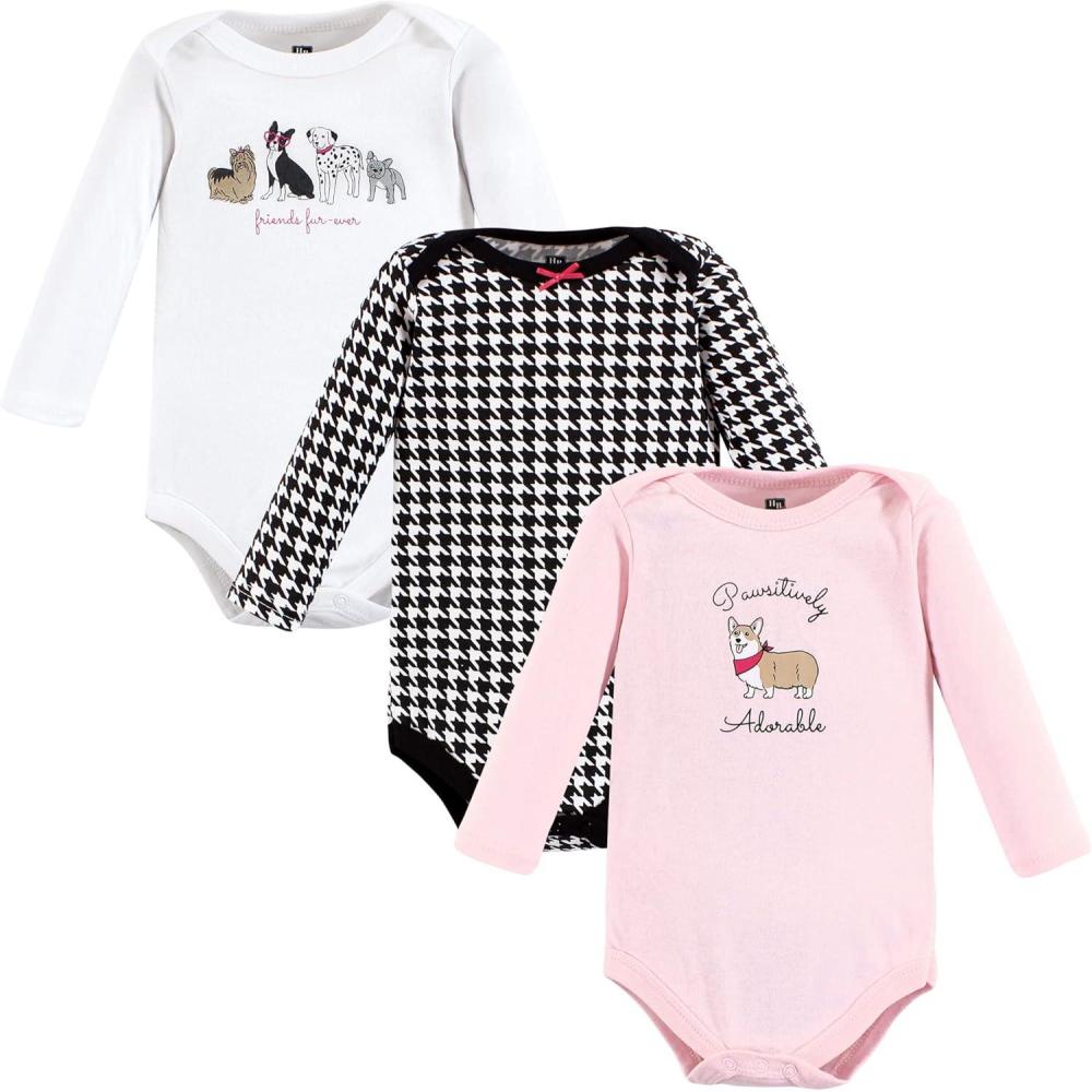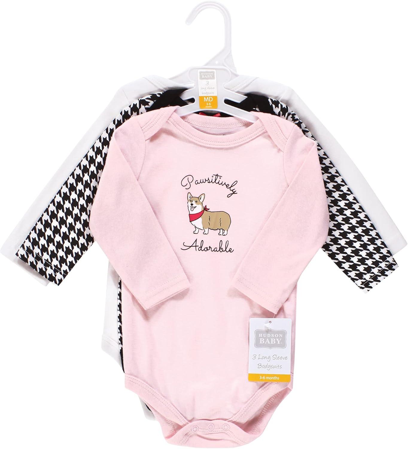 Hudson Baby baby-girls Cotton Long-sleeve Bodysuits 3-pack(Girl Dogs)