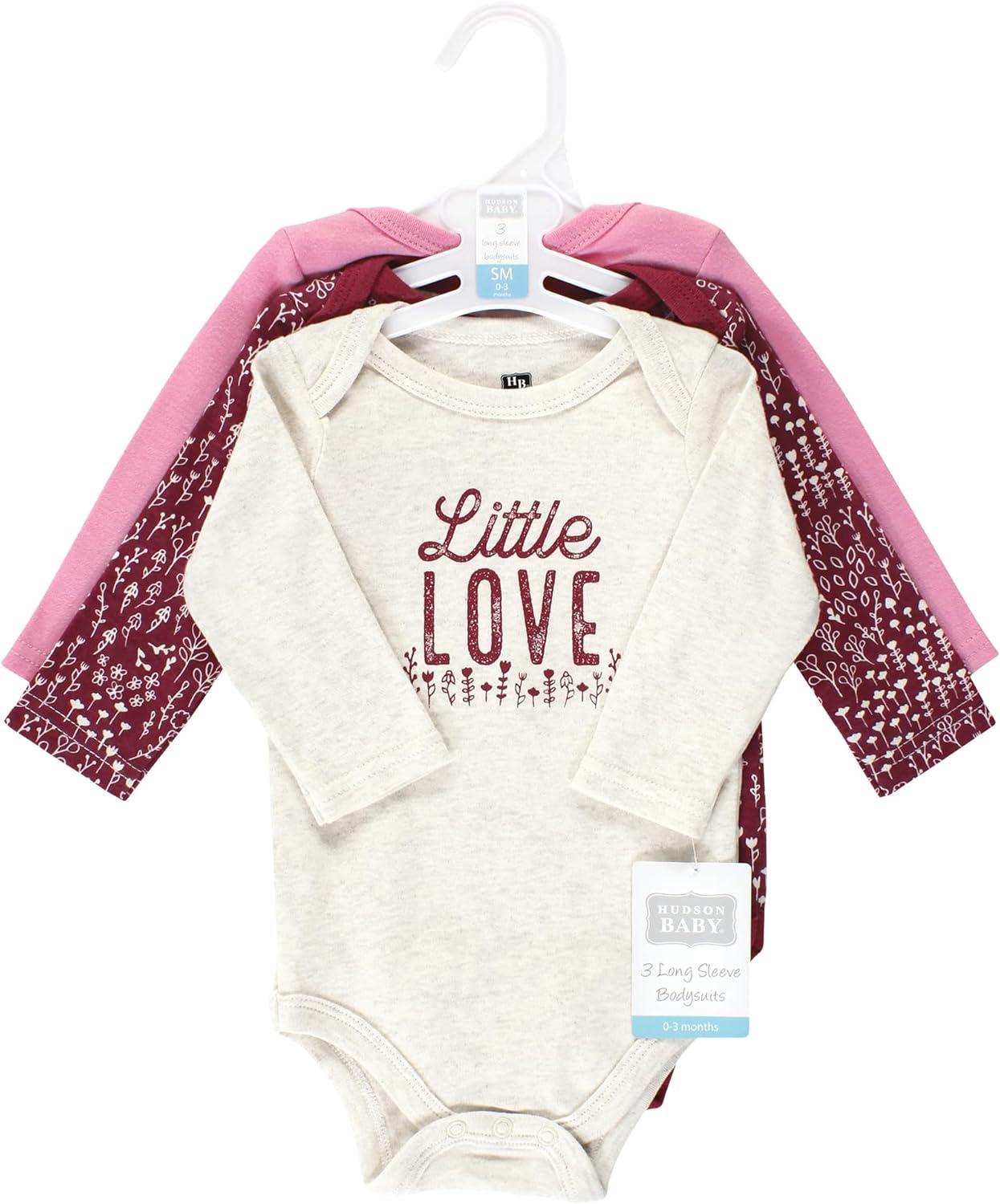 Hudson Baby baby-girls Cotton Long-sleeve Bodysuits 3-pack(Little Love Flowers)