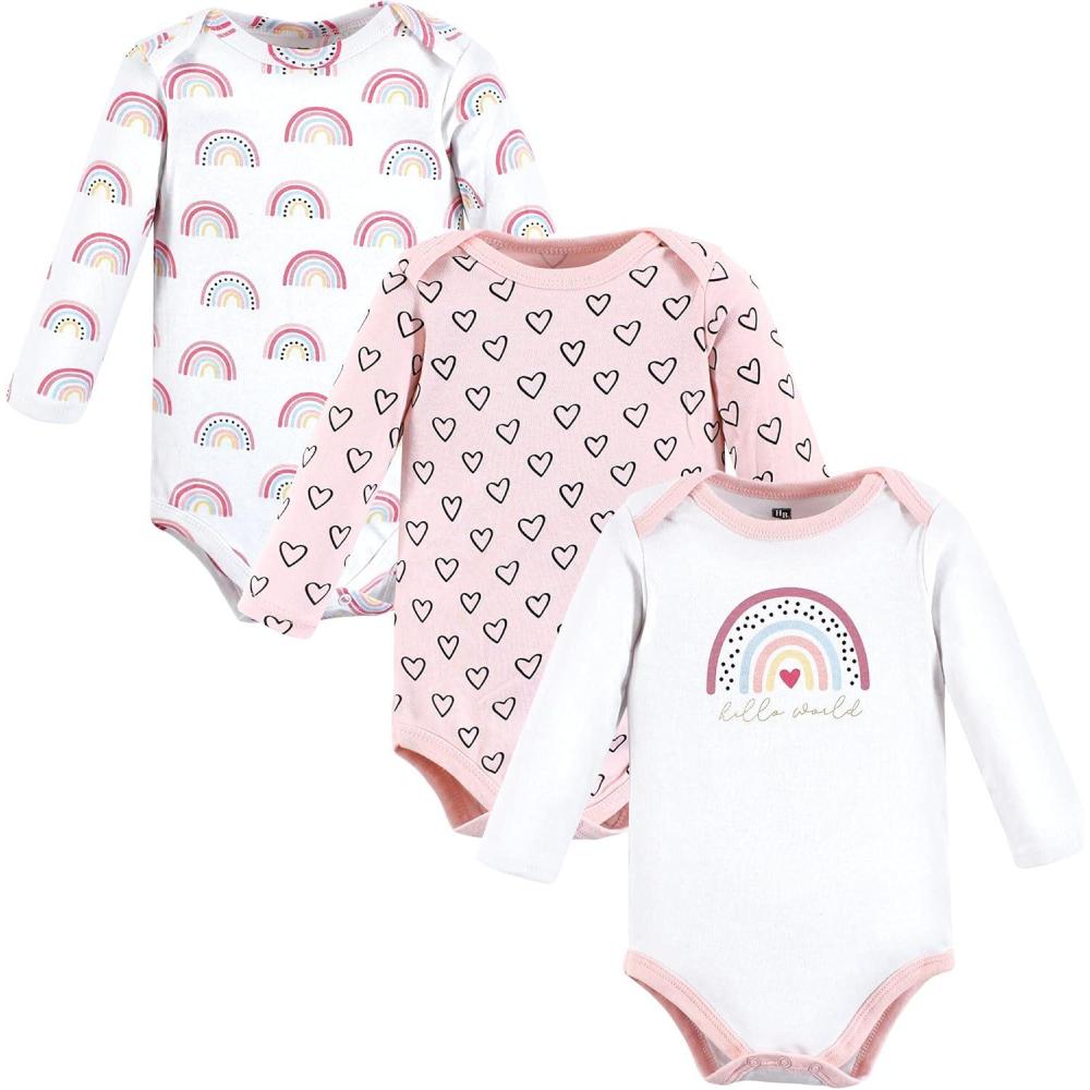 Hudson Baby baby-girls Cotton Long-sleeve Bodysuits 3-pack(Modern Rainbow)