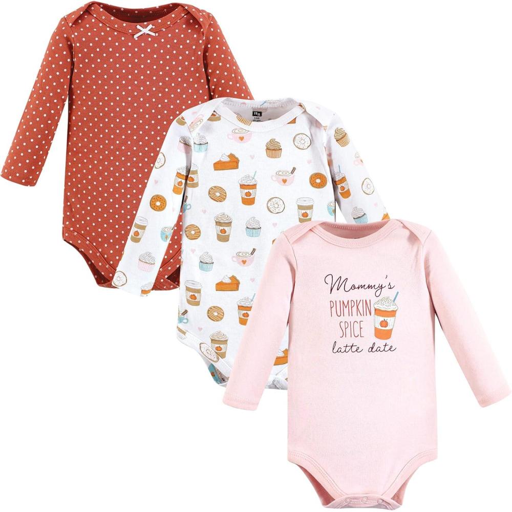 Hudson Baby baby-girls Cotton Long-sleeve Bodysuits 3-pack(Pumpkin Spice Date)