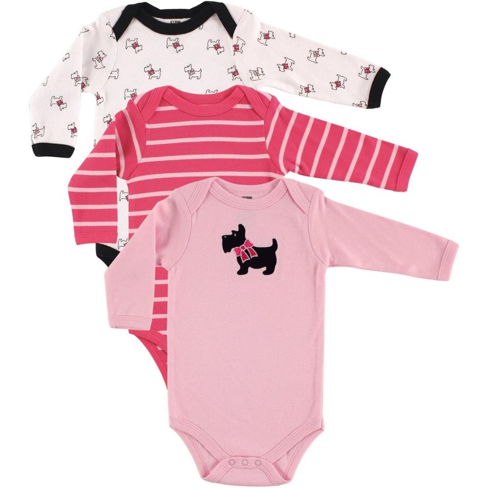 Hudson Baby baby-girls Cotton Long-sleeve Bodysuits 3-pack(Scottie)