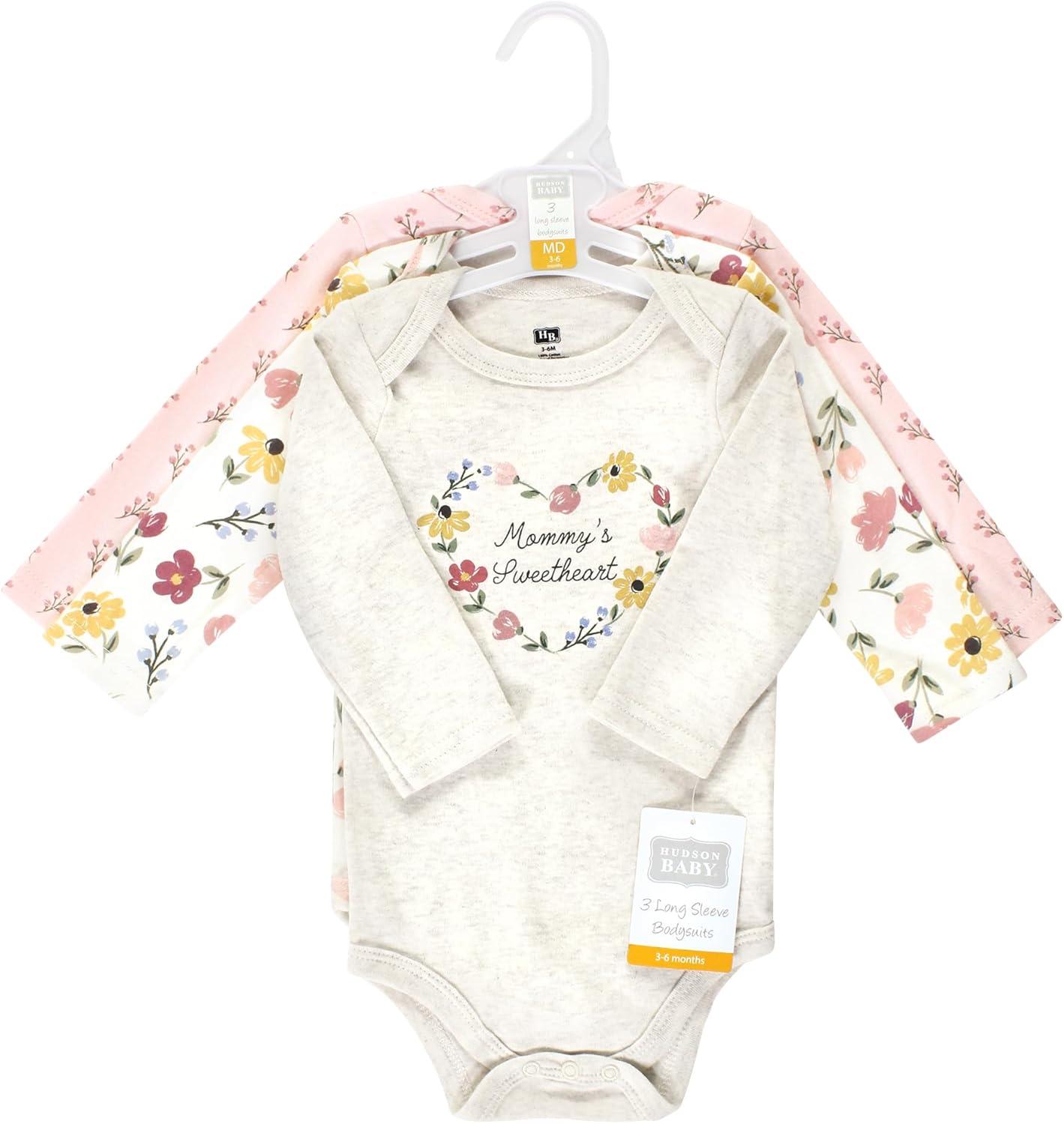 Hudson Baby baby-girls Cotton Long-sleeve Bodysuits 3-pack(Soft Painted Floral)