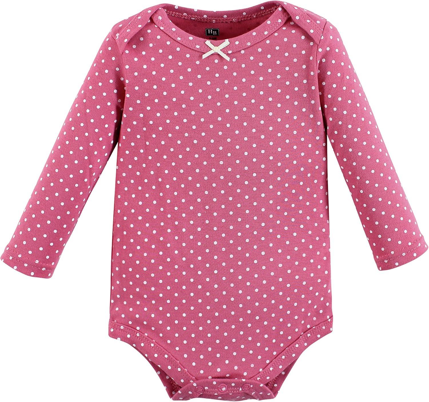 Hudson Baby baby-girls Cotton Long-sleeve Bodysuits 3-pack(Basic Pink Gray Floral)