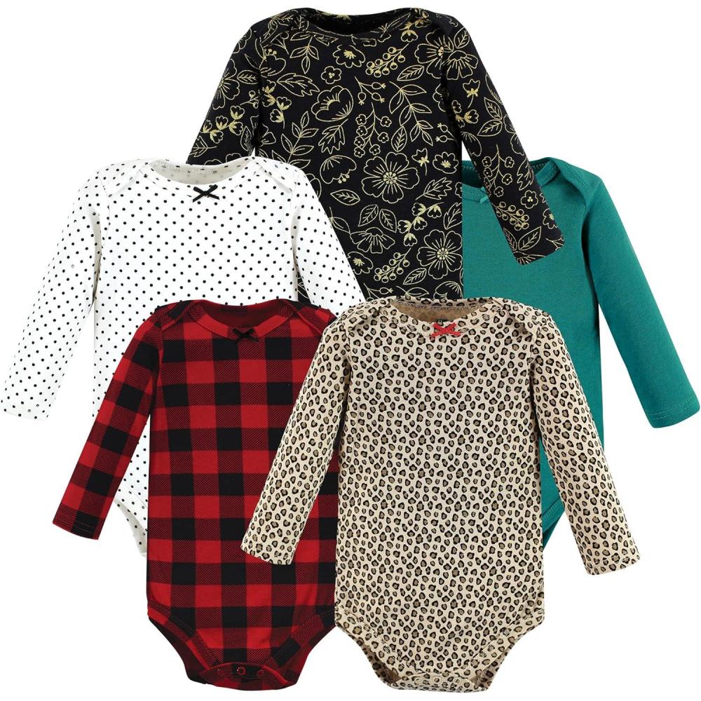 Hudson Baby baby-girls Cotton Long-sleeve Bodysuits 5-pack(Buffalo Plaid Leopard)